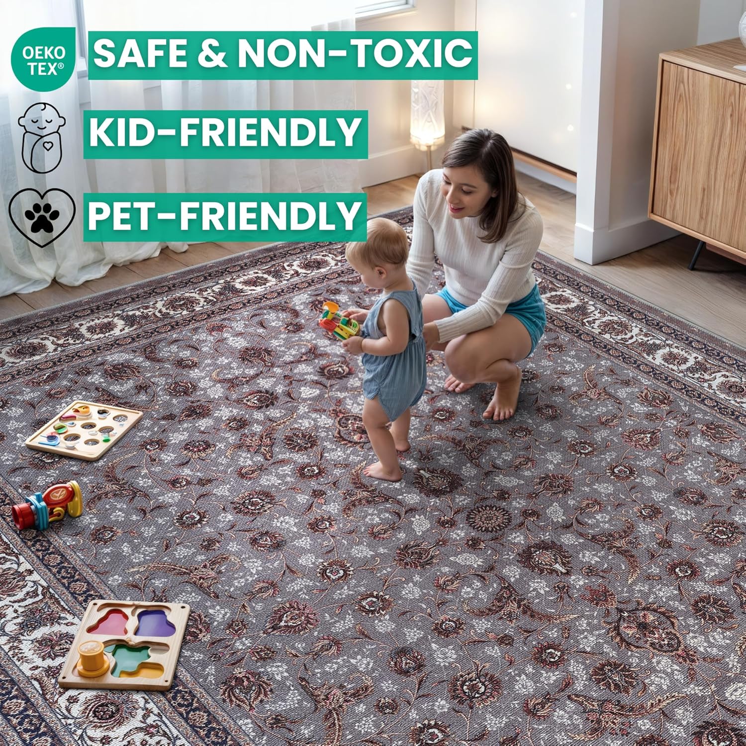 • EASY TO SETUP AND NON-SLIP: This one-piece machine washable rug with non-slip backing attached eliminates any additional setup. Simply unfold and lay flat upon arrival in the desired space. Non-slip backing prevents the rug from moving or sliding without the need for additional rug pad or grippers.