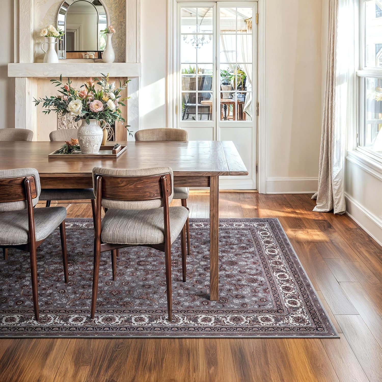 Bloom Rugs Washable Non-Slip 6' x 9' Rug - Slate Gray Traditional Oriental Area Rug for Living Room, Bedroom, Dining Room, and Kitchen - Exact Size: 6' x 9'