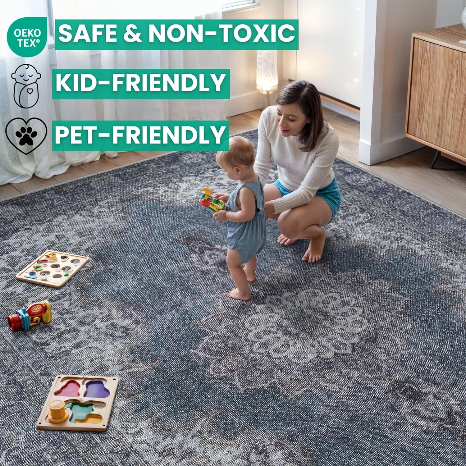 • MACHINE WASHABLE: Machine wash on delicate cycle (do not use bleach) at 85°F (30°C) and line dry or dry on air-only cycle without heat. Vacuum regularly and spot clean small stains. This easy to clean rug is perfect for families with kids and pets, and for high traffic areas.