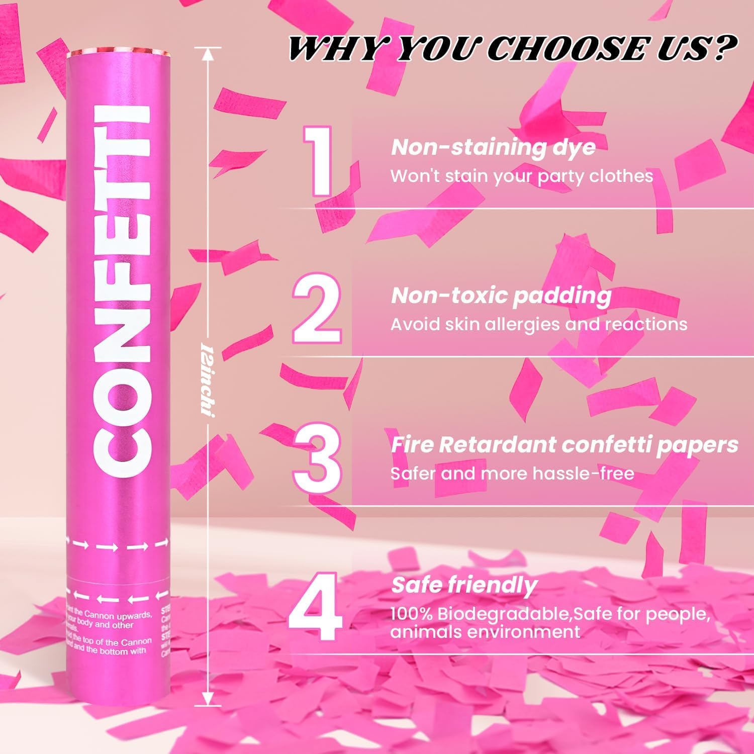 • 【Satisfaction After Sale】Make your every celebration a perfect memory with our cutes pink confetti cannon. If you're unsatisfied with our confetti poppers in any way, please let us know. Our customer service team will take care of all issues promptly and efficiently to make sure that you're fully satisfied.