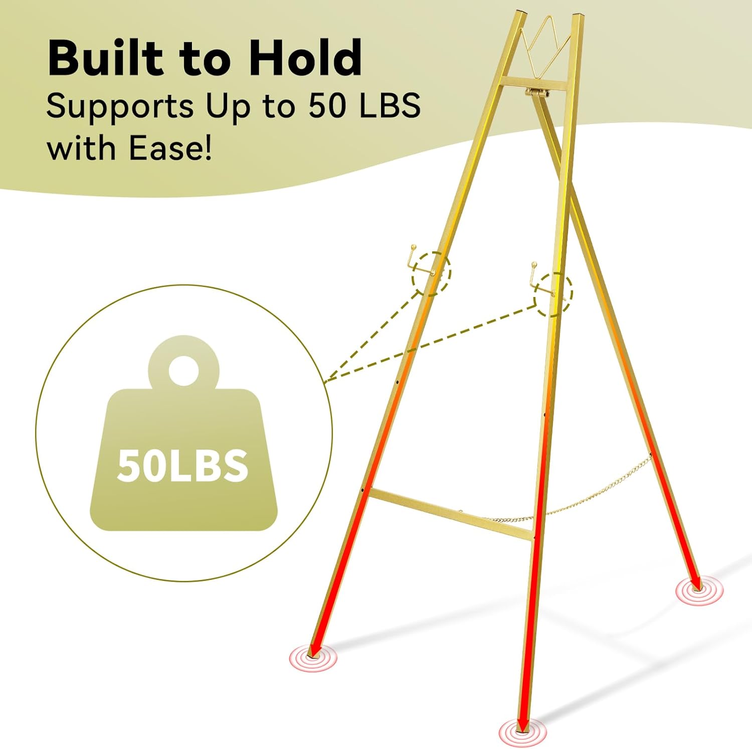 GRENTY 2 Pack Gold Easel Stand for Wedding Signs – No Assembly Needed, Heavy Duty Metal Display Stand for Art, Welcome Signs, Posters, Pictures, Paintings, and Floor Décor