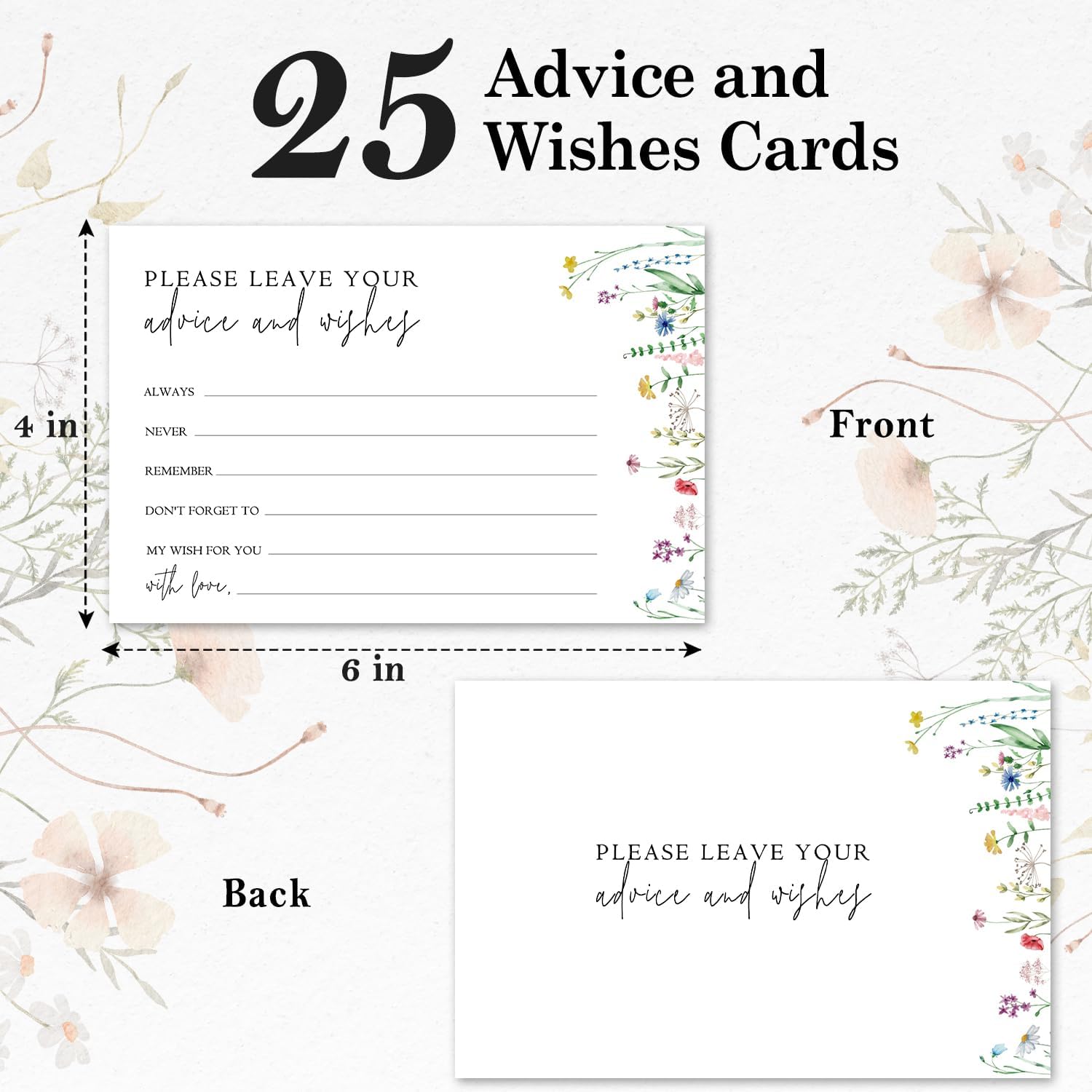 Wildflower Advice And Wishes Cards For The Mr And Mrs, Blank Well Wishes For Baby Shower, Bridal Shower And Graduation Party, Wedding Advice Cards 4x6, Pack of 25 -G15