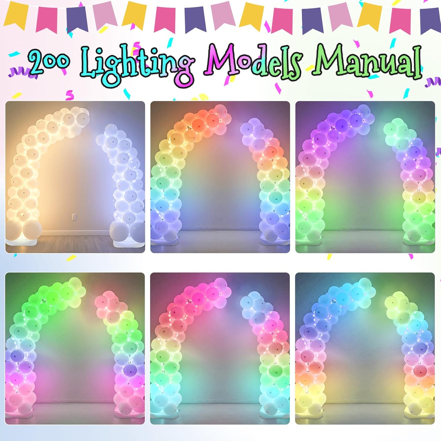 • .【Suitable for both day and night】To solve the problem that the balloon arch stand cannot be displayed well in a bad light environment at night, we combine the light strings with 200 light modes with the balloon stand (Batteries not included), which can achieve good effects at night. The white light can well restore the style of the balloon scene you want, and other modes can be adjusted as you want.