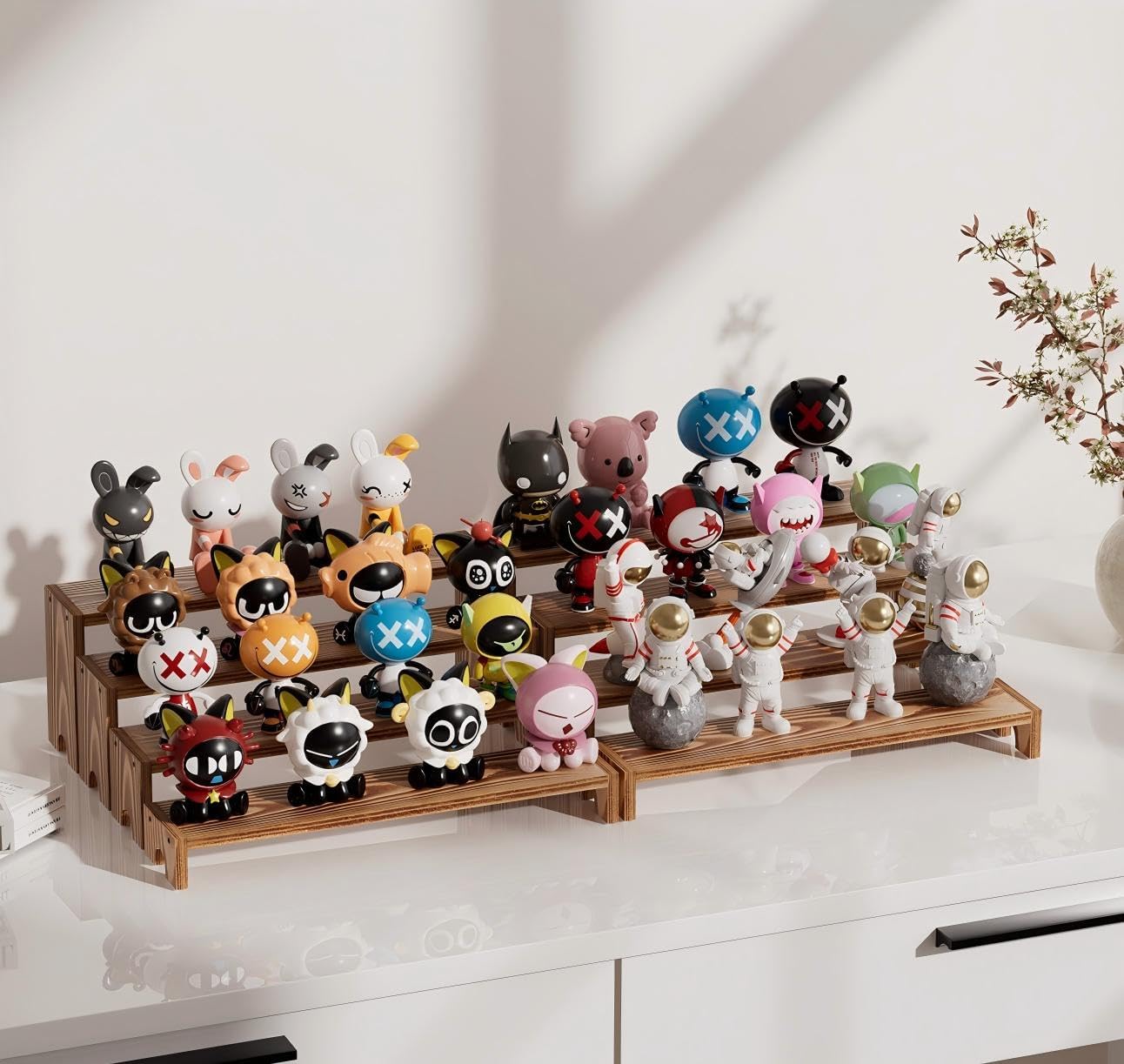 • 【2 Set 8 Pcs Wooden Tiered Display Stand】2 sets (8 Pcs) of tiered shelf organizer – each set includes 4 graduated shelves (14"L x 2.95"W). Stronger than acrylic: Each shelf holds 22+ lbs (10+ kg) for heavy perfumes, figures,Toys or Cupcake. Simple assembly required – transform cluttered countertops into chic perfume organizers for men women instantly!