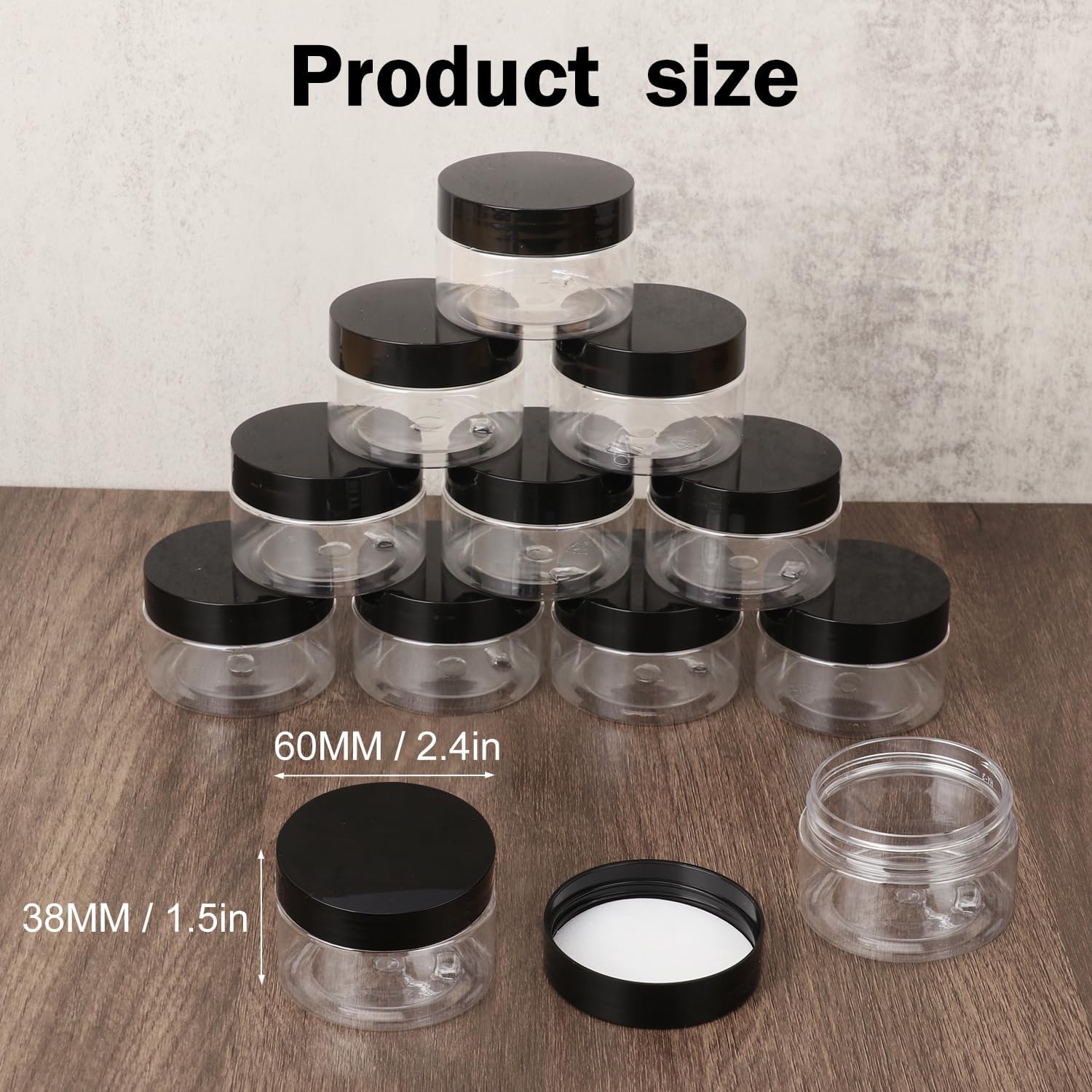 • 【Travel-Friendly Design】: Compact and leakproof, these 2 oz cosmetic containers with black lids are ideal for travel. Store your favorite lotions, creams, and serums without worrying about spills or leaks.