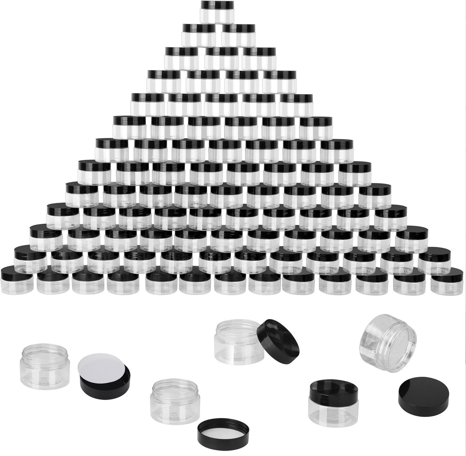 110 Packs 2 OZ Transparent Plastic Jars with black Lids, Body Butter Containers, Cosmetic Containers jars for Kitchen Ingredients, beads, sequins, Lotion, Cream, DIY Crafts and More by KUKLIPJIM.