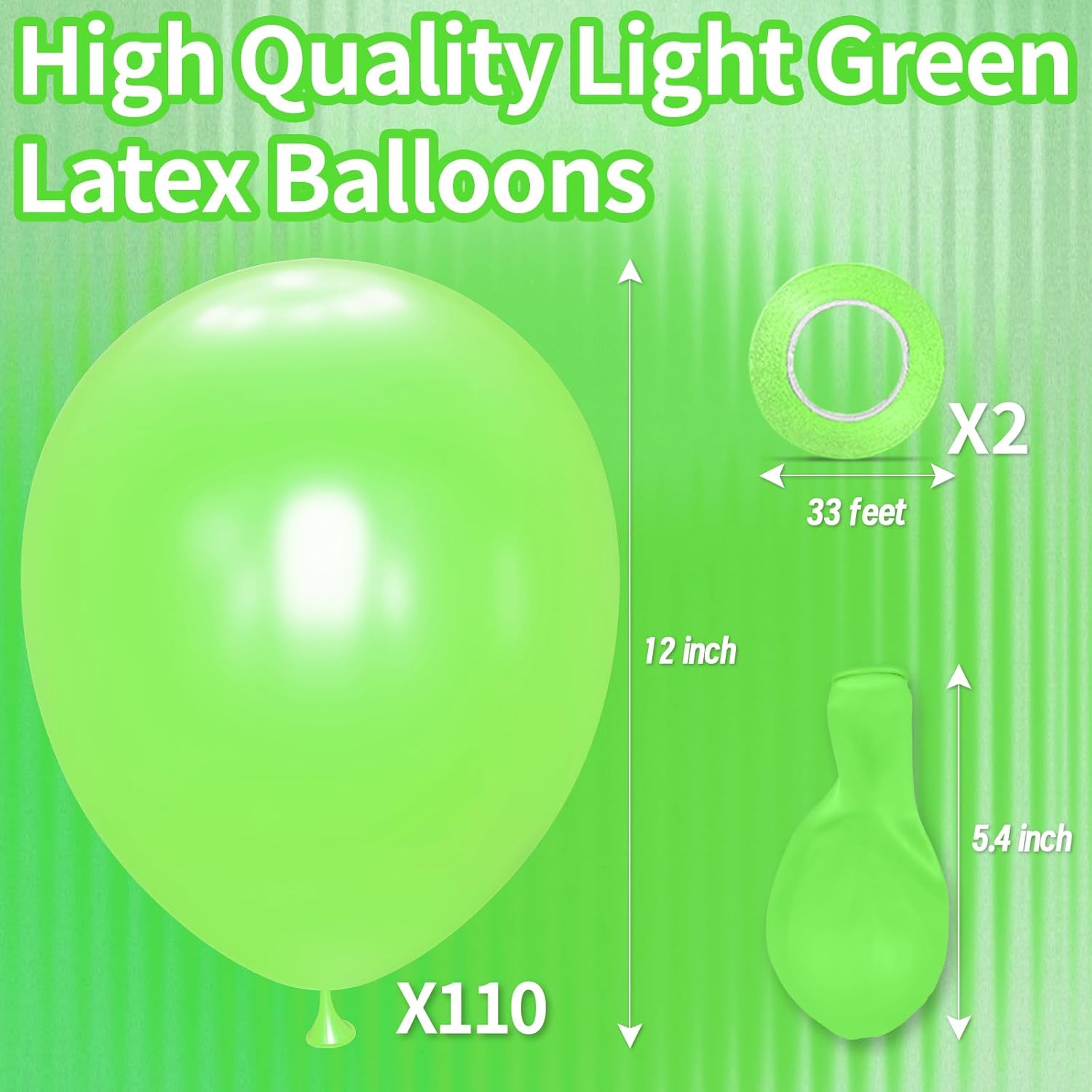 KAWKALSH Lime Green Latex Party Balloons, 110 Pack 12 inch Light Green Balloons Round Helium Fruit Green Balloons for Birthday Dinosaur Jungle Baby Shower Party Decoration