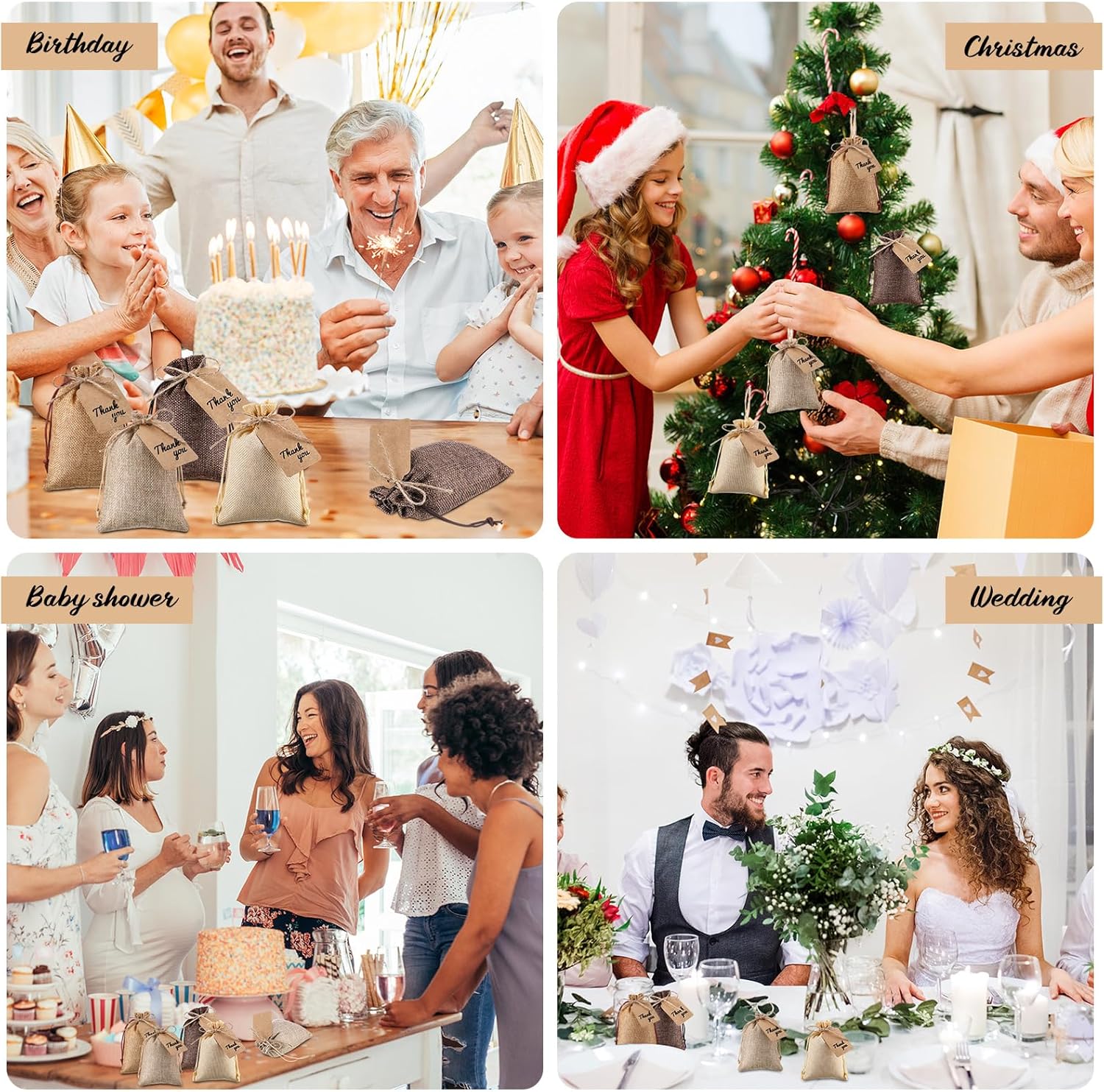 • Wide Occasions: these burlap treat bags are ideal for home parties, weddings, anniversaries, birthdays, bridal showers, housewarming, travel, holiday celebrations, family reunions, Valentine's Day, Christmas, Thanksgiving, New Year and other festivals, giving small gifts to friends and family members during the holidays