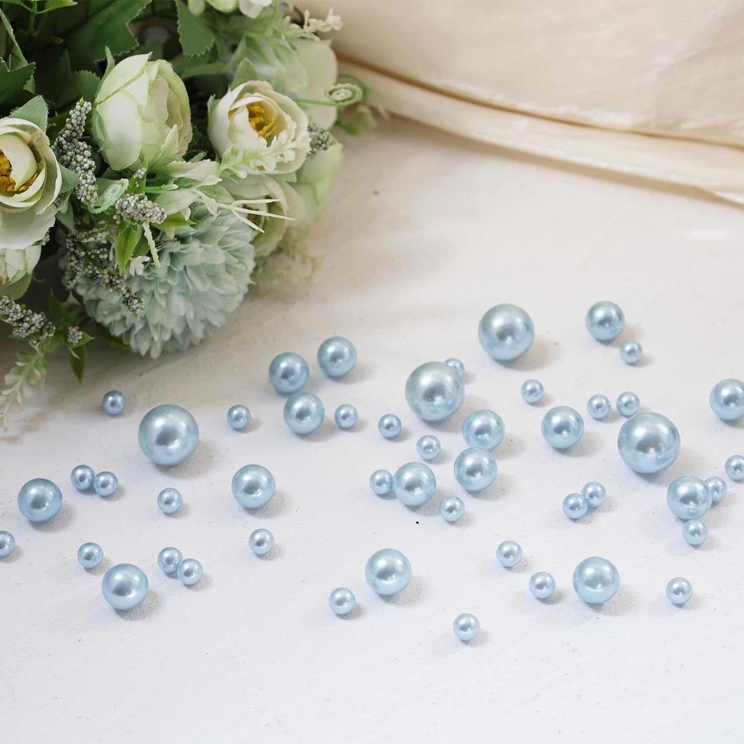 • Multi-Size Pearl Beads - Includes 260pcs metallic Lightblue pearl beads in three versatile sizes (6mm, 14mm, 18mm) for dynamic layering and a luxurious effect in vases or bowls