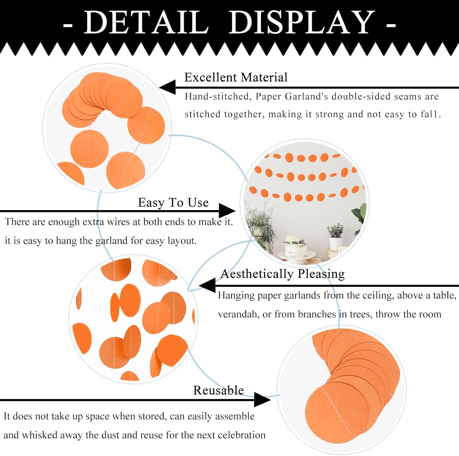 • How It'S Made: MerryNine Paper Garland is made of high quality card stock circle polka dots that is sewn together with double sturdy thread, each thread is sewn with 40pcs dots, each end has plenty of extra thread to makes it easy to hang the garland