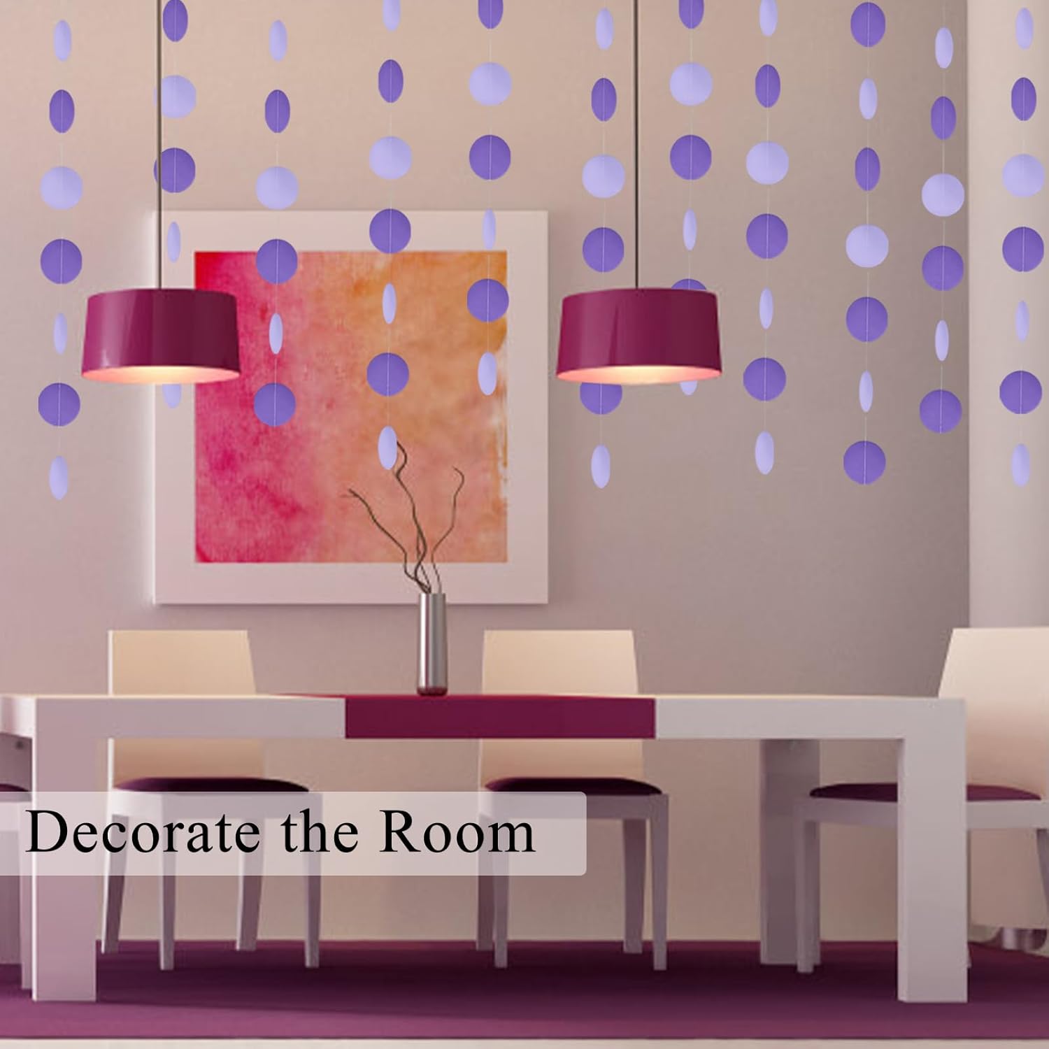 MerryNine Paper Garland 5 Pack, 50ft Glitter Paper Garland Circle Dots Hanging Decor, Banner for Baby Shower, Birthday, Nursery Party Decor (Purple)