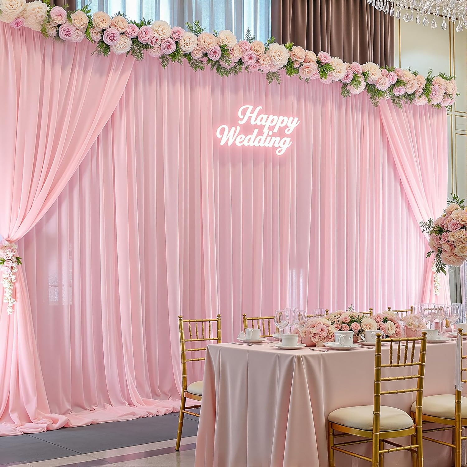 • Multipurpose and Versatile- These peach pink sheer backdrop curtains are applicable for any indoor and outdoor occasion either for decorative or functional uses: weddings arch, receptions, parties, bridal and baby showers, birthdays, candy buffets, dessert tables background, trade shows, wedding stages photography, photo booths, ceremony and more