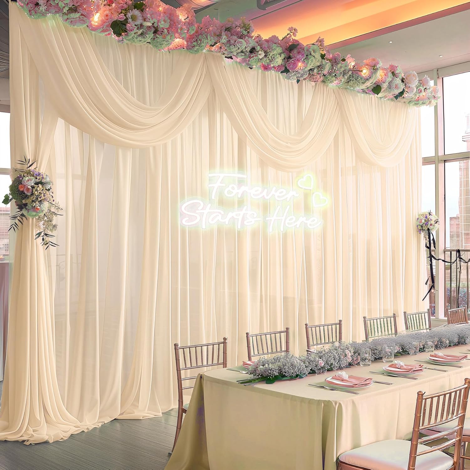 10ft x 10ft Champagne Backdrop Curtains, Wrinkle-Free Sheer Chiffon Fabric Photo Backdrop Drapes for Wedding Arch Party Ceremony Stage Photography Decorations