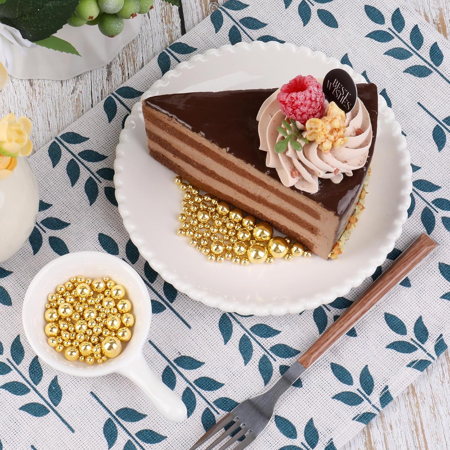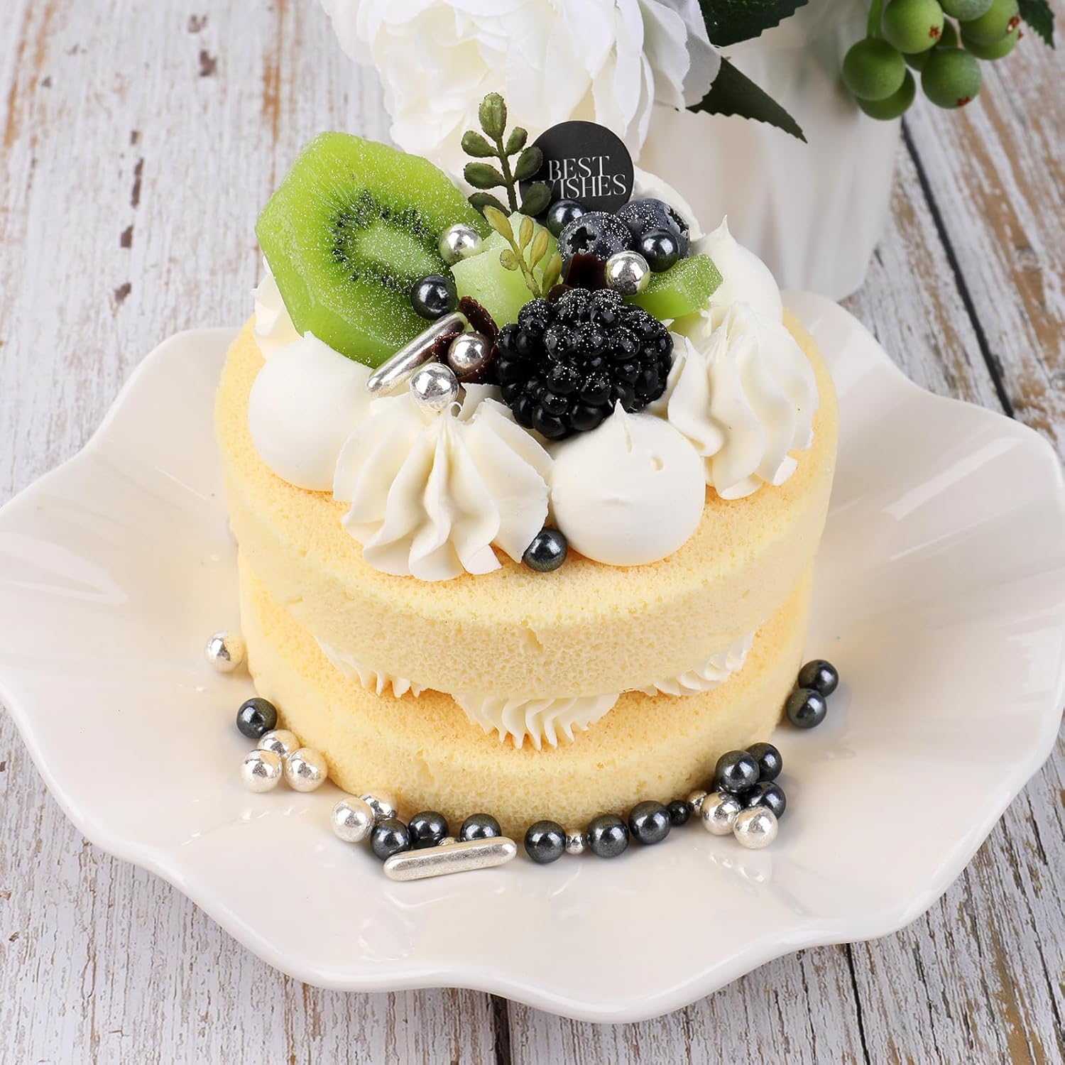 • Elegant Metallic Colors: Includes black, white, silver, and gold sugar pearls, plus two unique blends—gold & white hearts, and silver & black pearls—for a striking, high-end look on any dessert