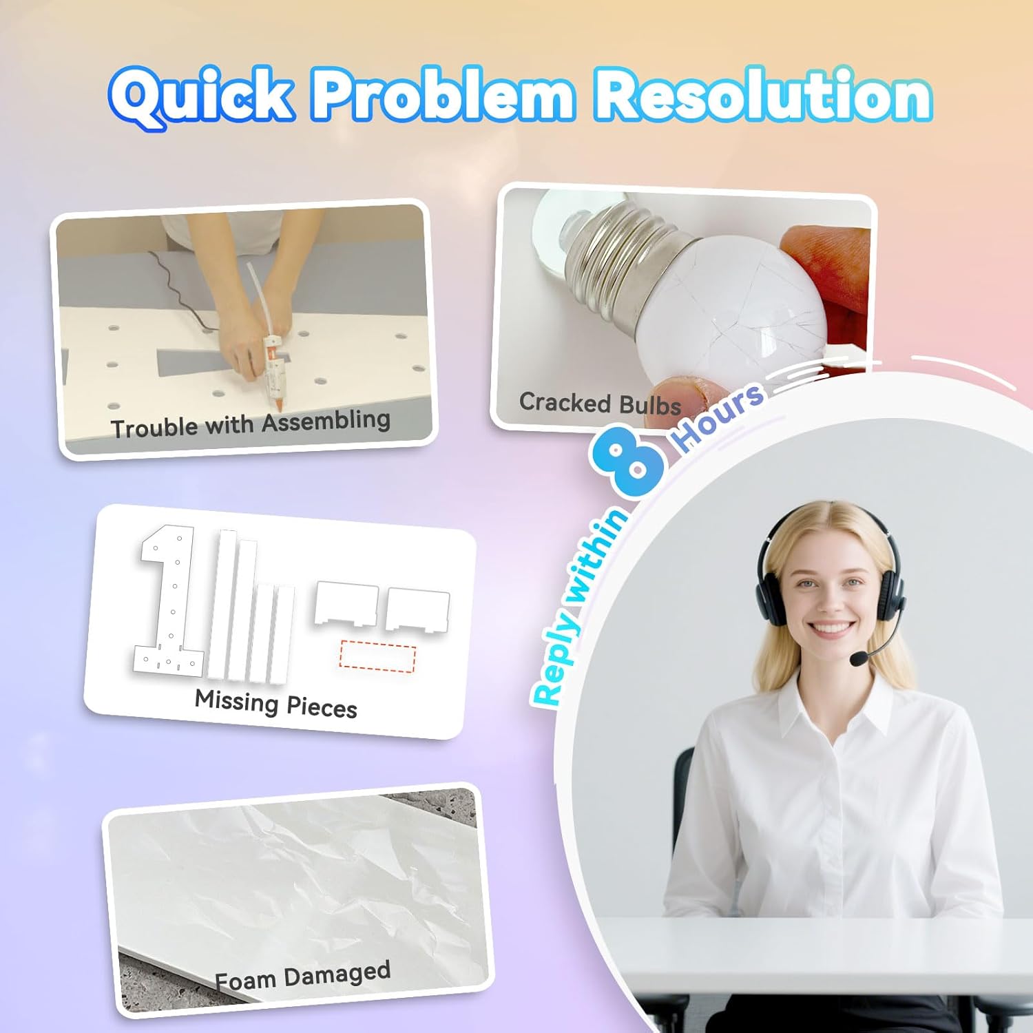 • 【Assembly Required】 4FT Marquee letters are composed of pre-cut foam plates, and also include a remote control, bulbs, and corresponding LED light strings. The product comes with detailed installation instructions and video installation tutorials, making it easy for one person to assemble. When these large light up letters and letters come on, your party can achieve amazing decorative effects.