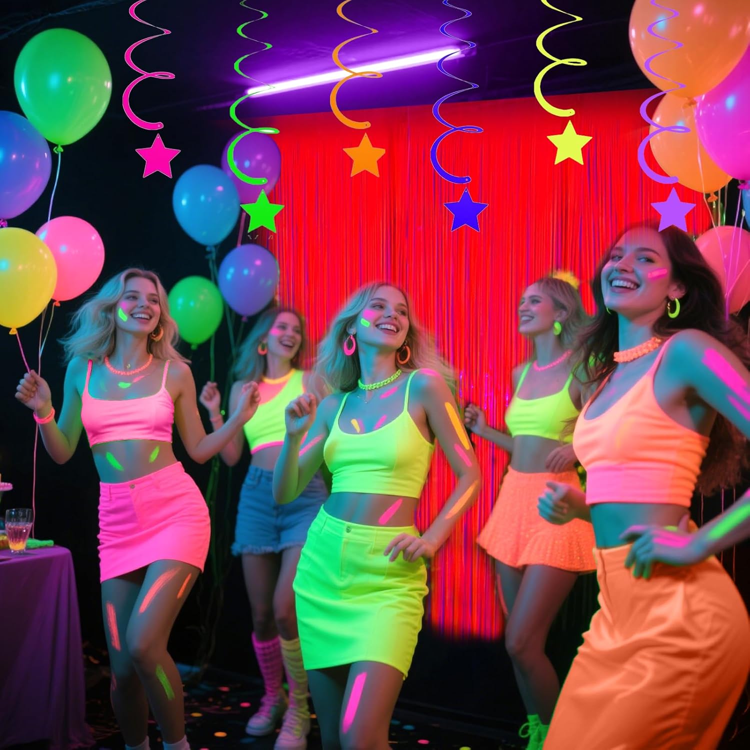 • Multi-Use Function and Occasions: These glow in the dark decorations suitable for blacklight party, neon party, fluorescent parties, disco bachelorette party, birthday party, euphoria party, carnival, dance party, wedding, holiday carnivals, graduations, anniversaries, retirement, banquets, holiday celebrations, Halloween, Christmas, school events or occasion that blacklight party is required. Glow in the dark streamers for parties to make your party perfect and fun. Your guest will love them and take photo with them.