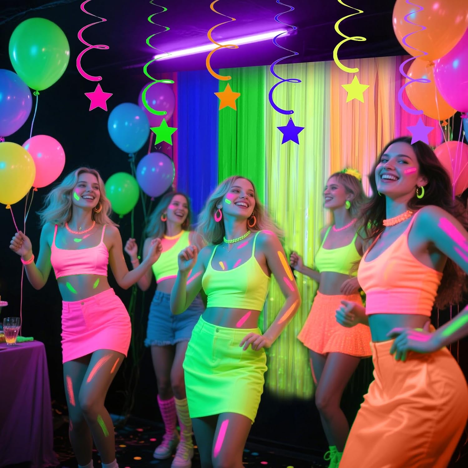 • Multi-Use Function and Occasions: These glow in the dark decorations suitable for blacklight party, rainbow party, neon party, fluorescent parties, disco bachelorette party, birthday party, euphoria party, carnival, dance party, wedding, holiday carnivals, graduations, pride month decorations, anniversaries, retirement, banquets, holiday celebrations, Halloween, Christmas, school events or occasion that blacklight party is required. Glow in the dark streamers for parties to make your party perfect and fun. Your guest will love them and take photo with them.