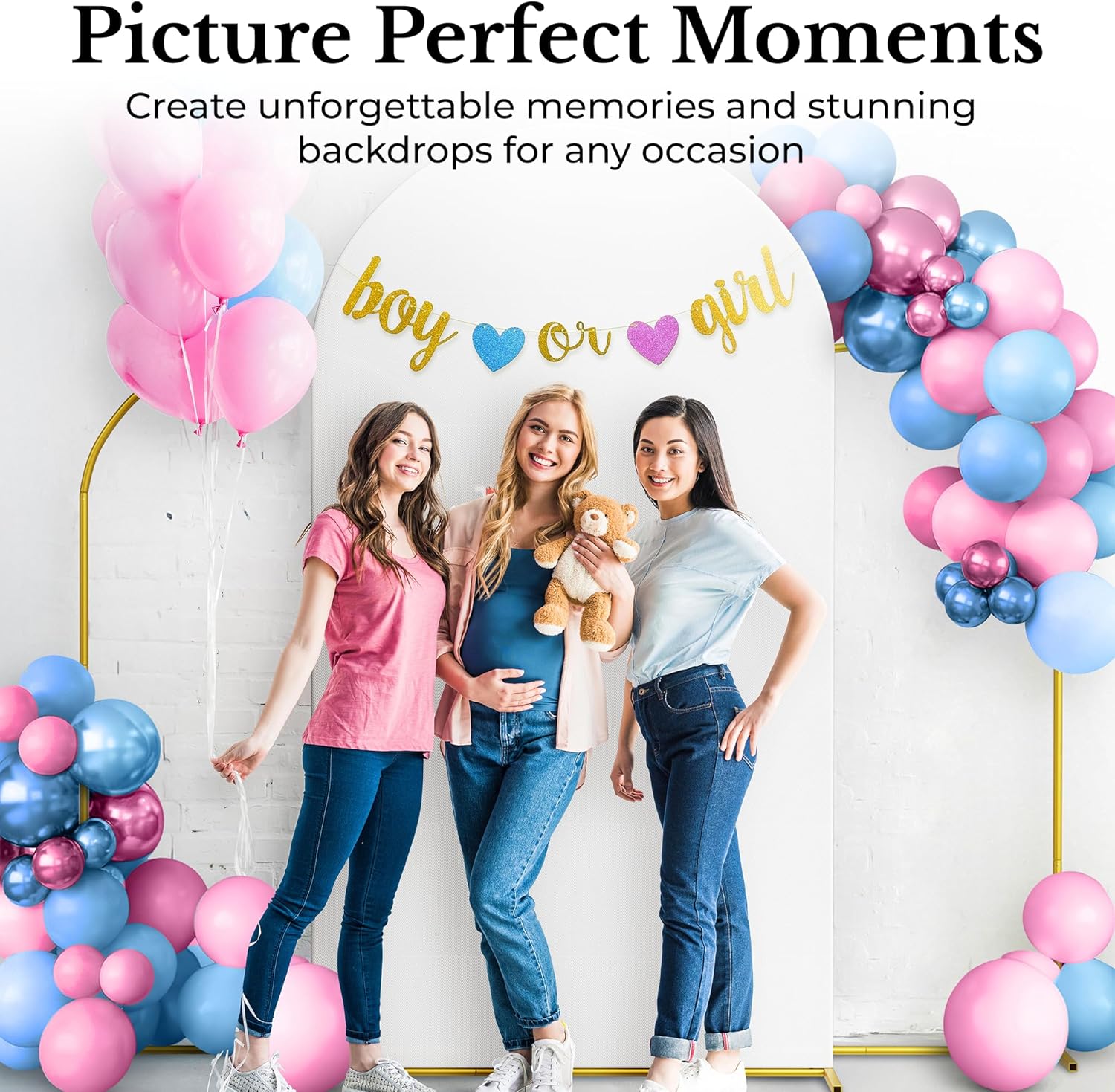 • BE PHOTO-READY INSTANTLY by placing the white spandex covers on the gold arches backdrop. To make your event unforgettable, dress up your party arch backdrop stand with flowers, leaves, lights, or balloons and watch your vision become reality