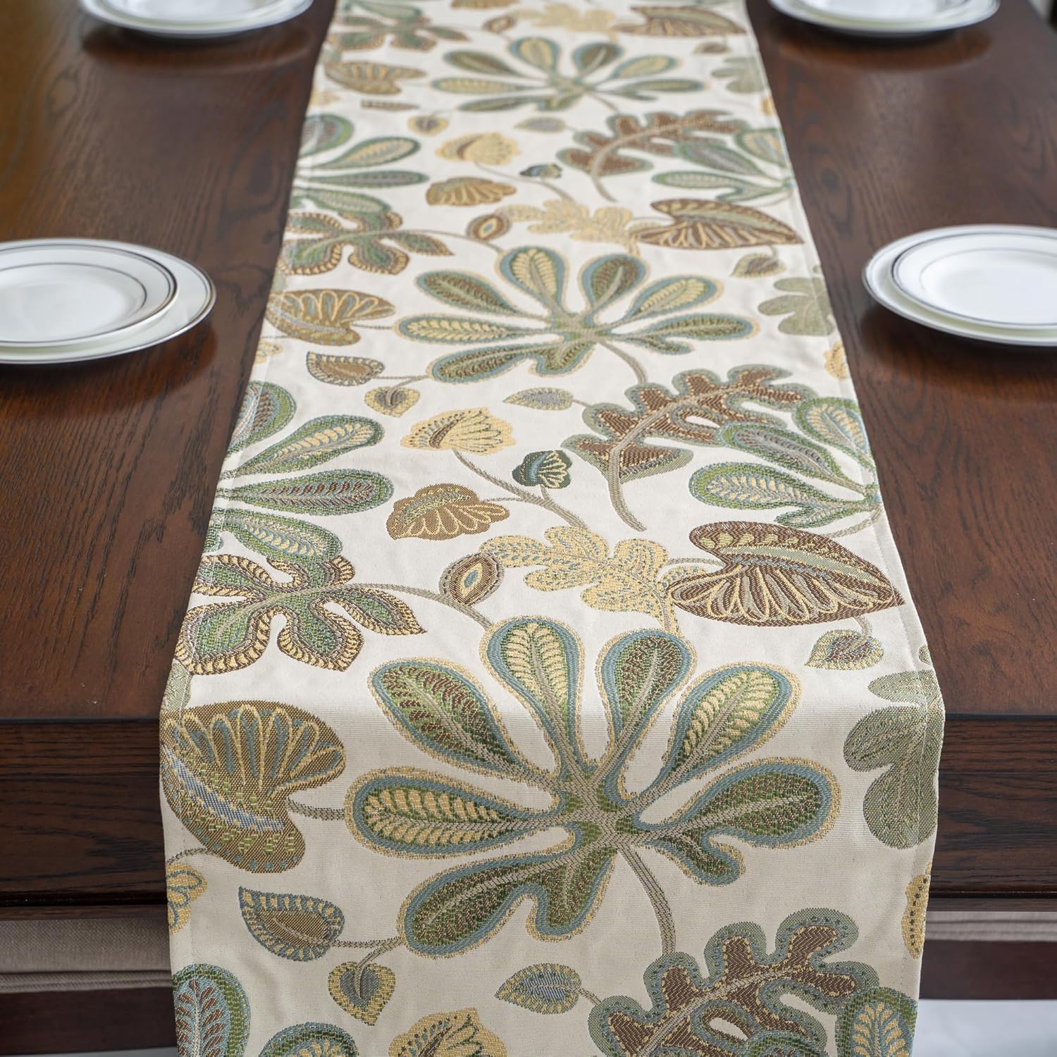 Mika Home Tropical Leaf Table Runner for Home Decor 13X90 Inches Green Brown Seasonal Dining Table Decoration for Home