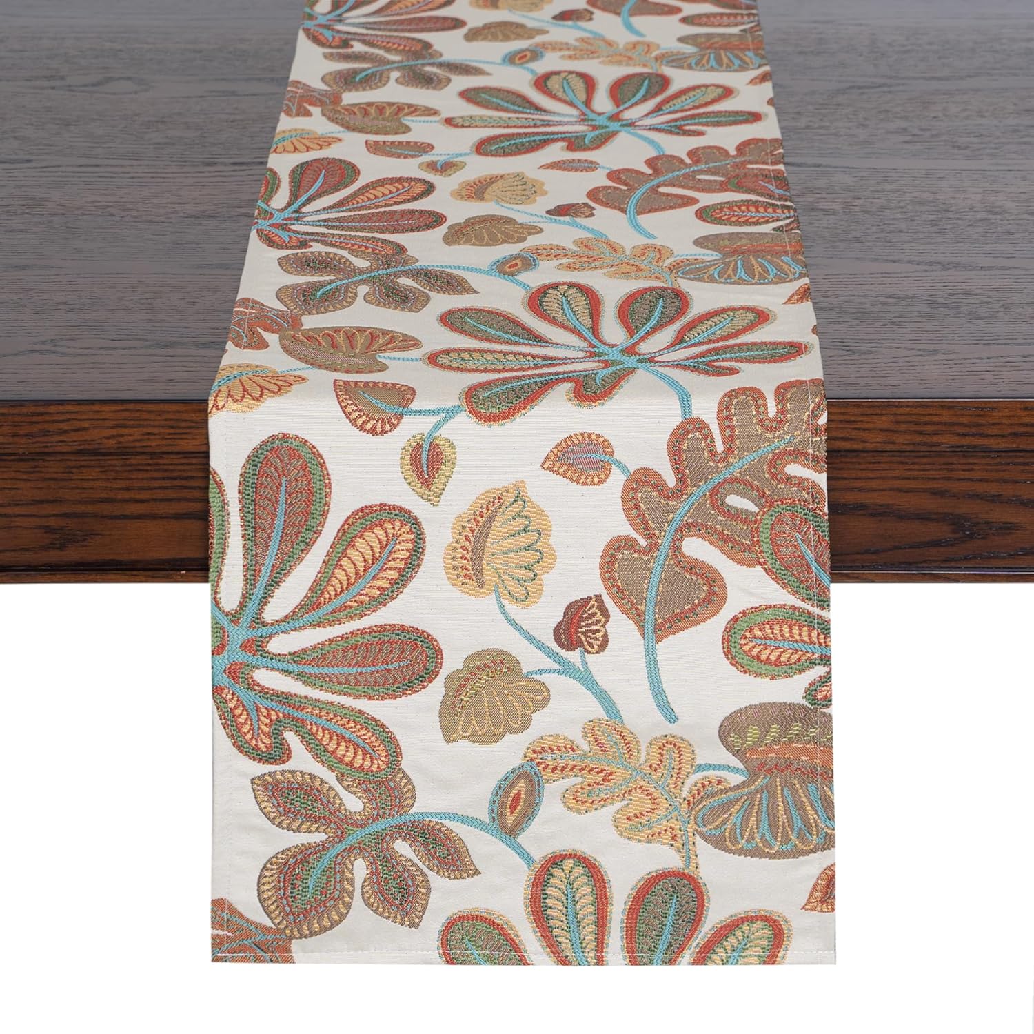 Mika Home Tropical Leaf Table Runner for Home Decor 13X90 Inches Teal Brown Seasonal Dining Table Decoration for Home
