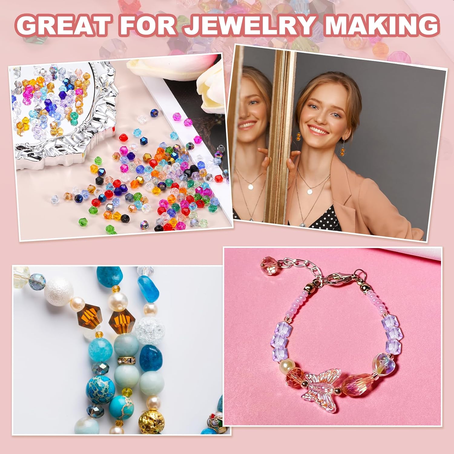 • Application: These bicone crystal beads are a good choice for earrings, bracelets, necklaces, anklets, rings, brooches, and keychains, and also can be used as decorations for chandeliers, suncatchers, bead curtains, wind chimes, wedding centerpieces, Christmas ornaments, and gift embellishments.