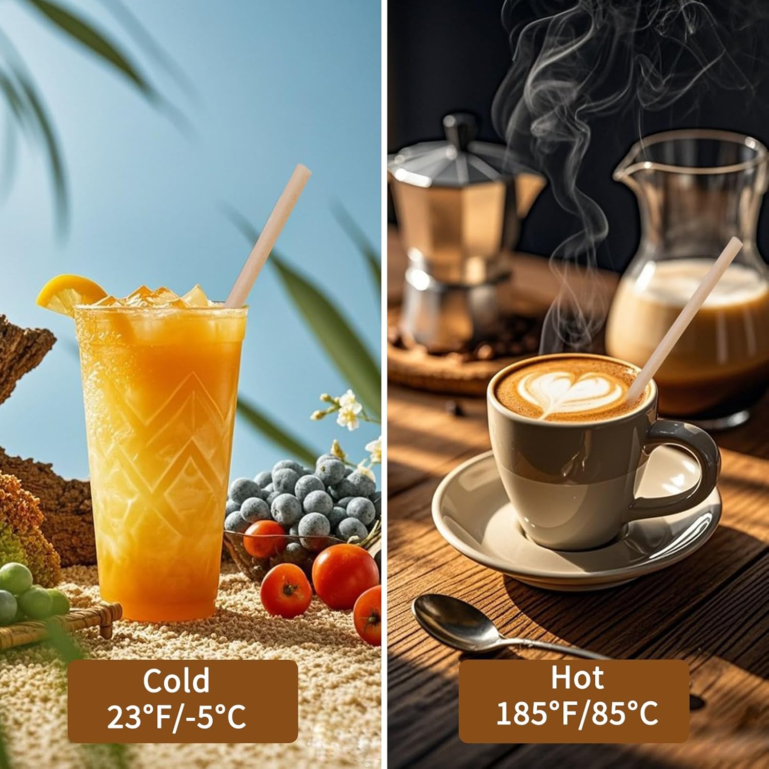 • High-quality materials - The long straws disposable are made of sugarcane fiber, which is made of 100% natural plant materials. The drink straws will neither dissolve nor impart flavor to your drinks. The bulk straws are suitable for hot coffee, juice, iced tea, and other hot or cold drinks