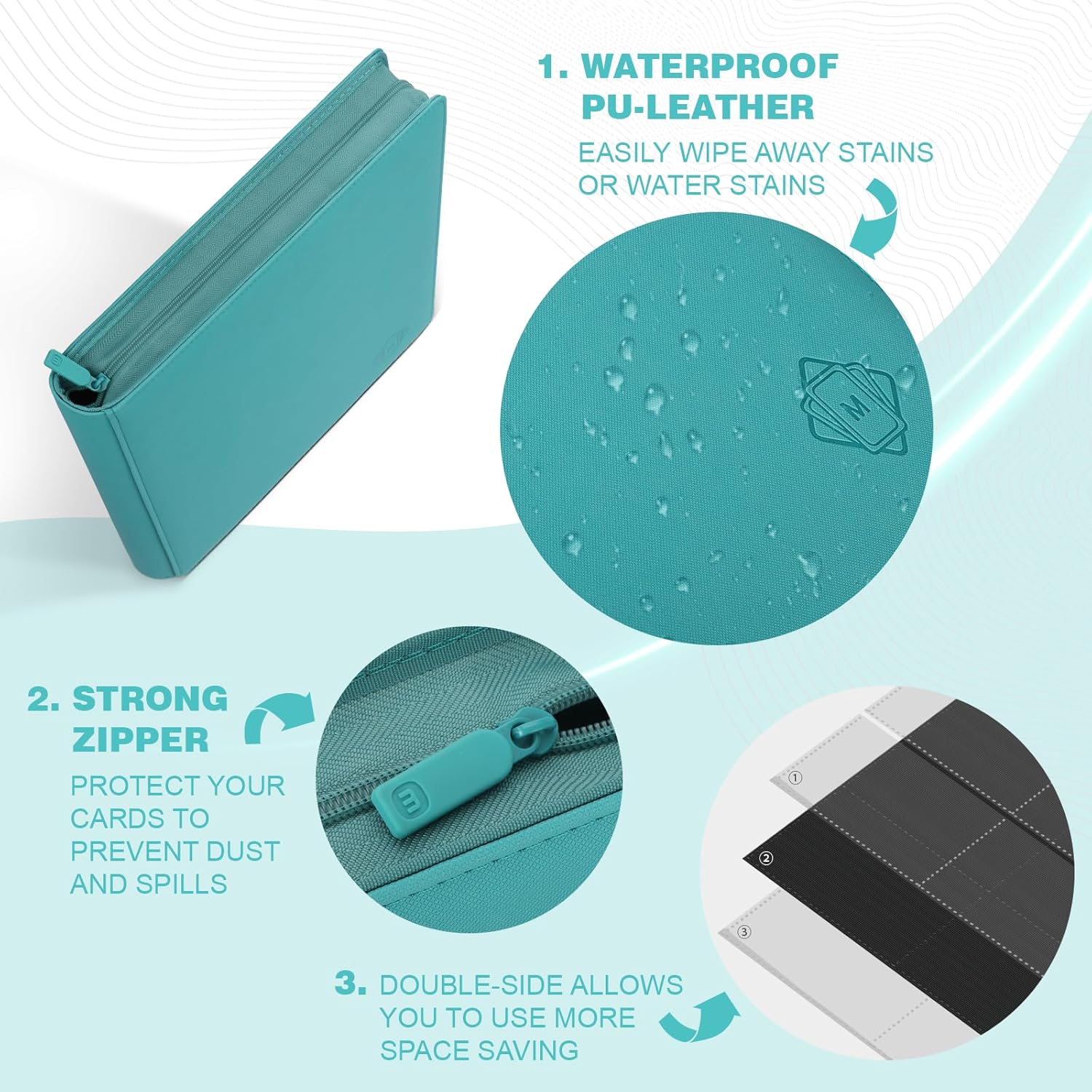 • 【PREMIUM QUALITY MATERIAL】 Our card binder is made of textured PU leather finish which is durable and comfortable. It more resistant to water and dust, Designed to keep card securely in place. Quality zipper keep cards protected and intact when not in use.The perfect way to safely browse your cards and never have to worry about your valuable cards being damaged. Offer different stylish colors to match your tastes.