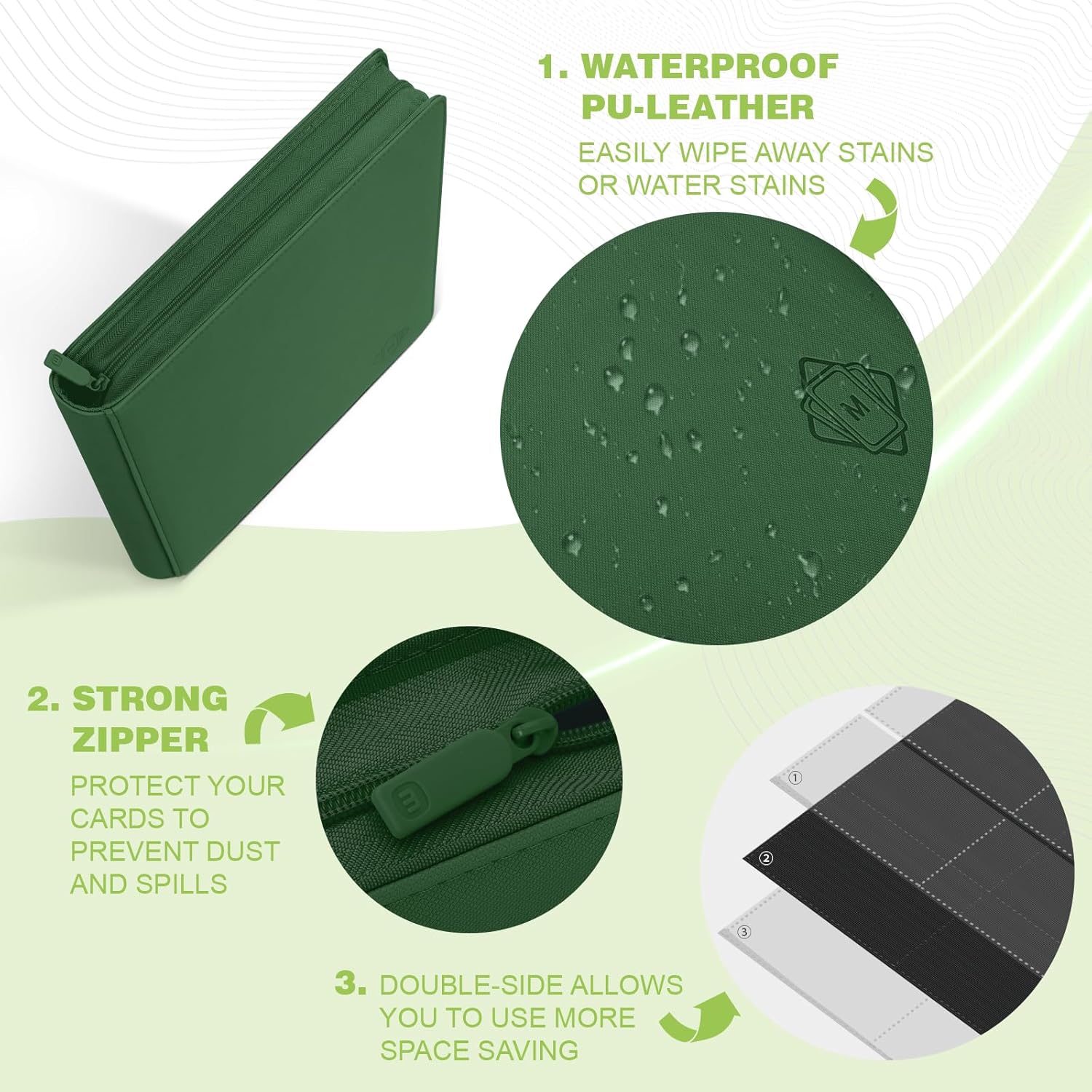 • 【PREMIUM QUALITY MATERIAL】 Our card binder is made of textured PU leather finish which is durable and comfortable. It more resistant to water and dust, Designed to keep card securely in place. Quality zipper keep cards protected and intact when not in use.The perfect way to safely browse your cards and never have to worry about your valuable cards being damaged. Offer different stylish colors to match your tastes.