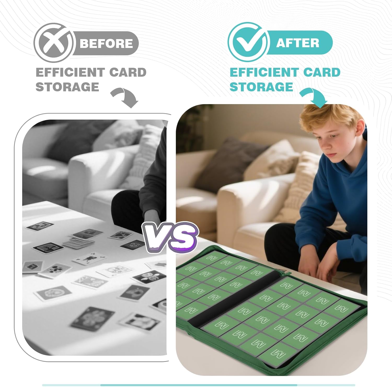 • 【LARGE CAPACITY 】It features an interior suede lining, providing a luxurious touch and ensuring durability.Our card binder holds up to 1024 trading cards with 16 pockets per page,both sides can hold cards,totalling 32 pages.Large storage capacity to meet your card collection needs ,keep all your cards organised.