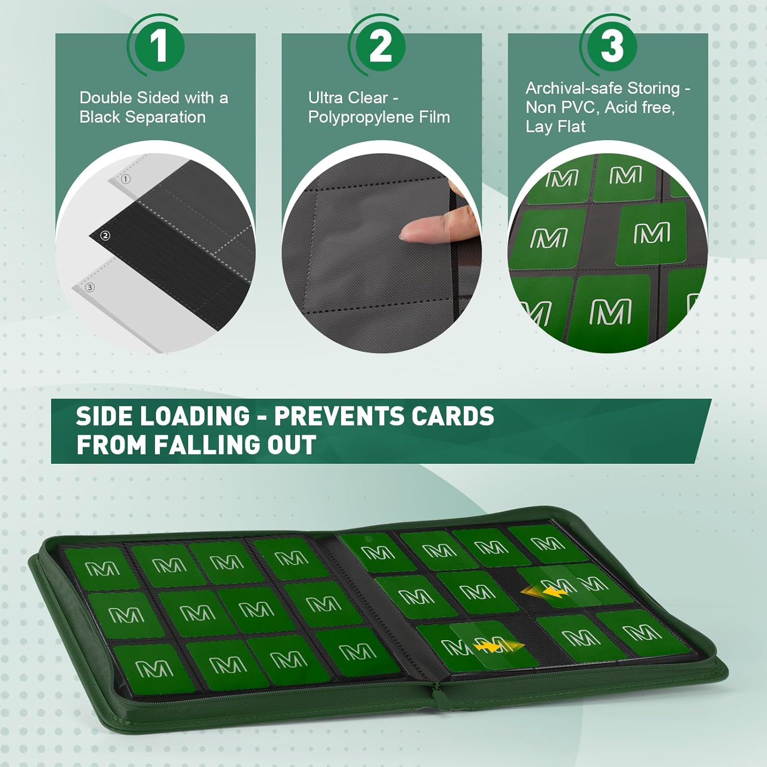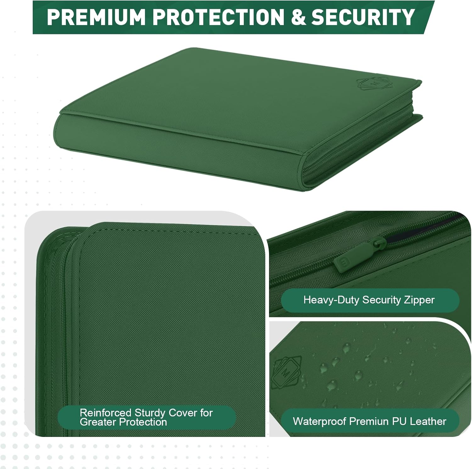 • 【PREMIUM QUALITY MATERIAL】 Card Binder is designed with textured PU leather material finish which is comfortable.this trading card binder is not only stylish but also ensures durability and long-lasting performance.The waterproof and durable card sleeves provide extra protection for your cards, keeping them safe from spills, moisture, and everyday wear and tear.