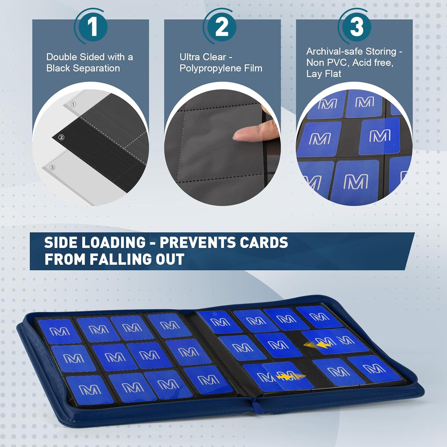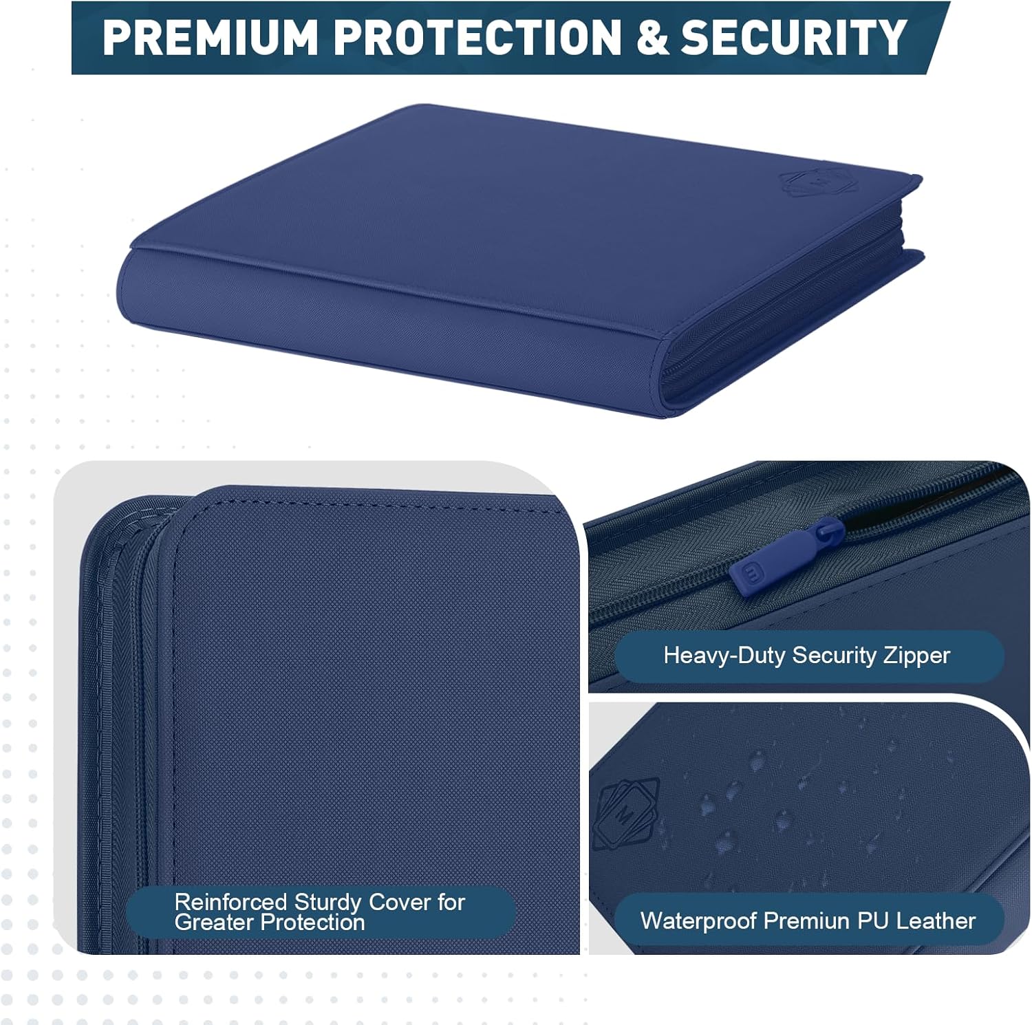 • 【PREMIUM QUALITY MATERIAL】 Card Binder is designed with textured PU leather material finish which is comfortable.this trading card binder is not only stylish but also ensures durability and long-lasting performance.The waterproof and durable card sleeves provide extra protection for your cards, keeping them safe from spills, moisture, and everyday wear and tear.