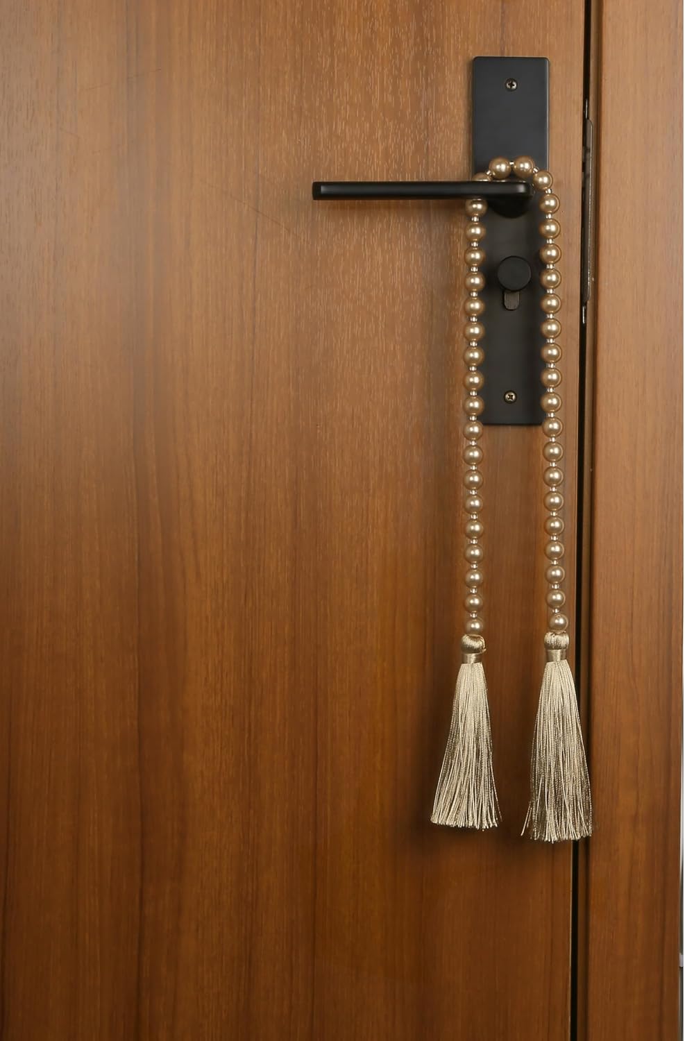Fenghuangwu 34 Inch Pearl Glass Bead Garland with Tassels - Elegant Boho Table Decor, Fringe Wall Hanging for Wedding, Party, Farmhouse Rustic Prayer Bead Home Decoration(2 Pack,Champagne Gold)