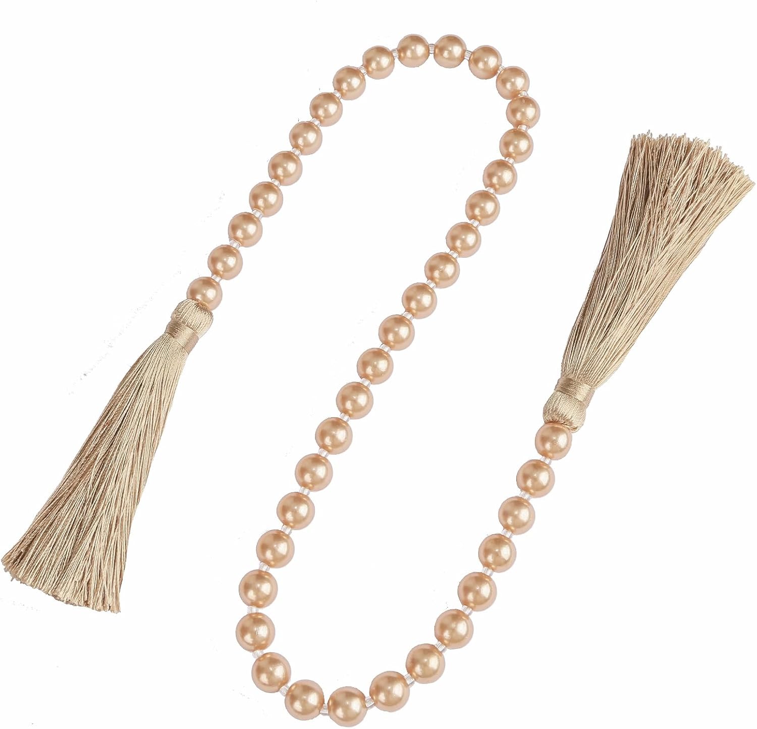 Fenghuangwu 34 Inch Pearl Glass Bead Garland with Tassels - Elegant Boho Table Decor, Fringe Wall Hanging for Wedding, Party, Farmhouse Rustic Prayer Bead Home Decoration(1 Pack,Champagne Gold)