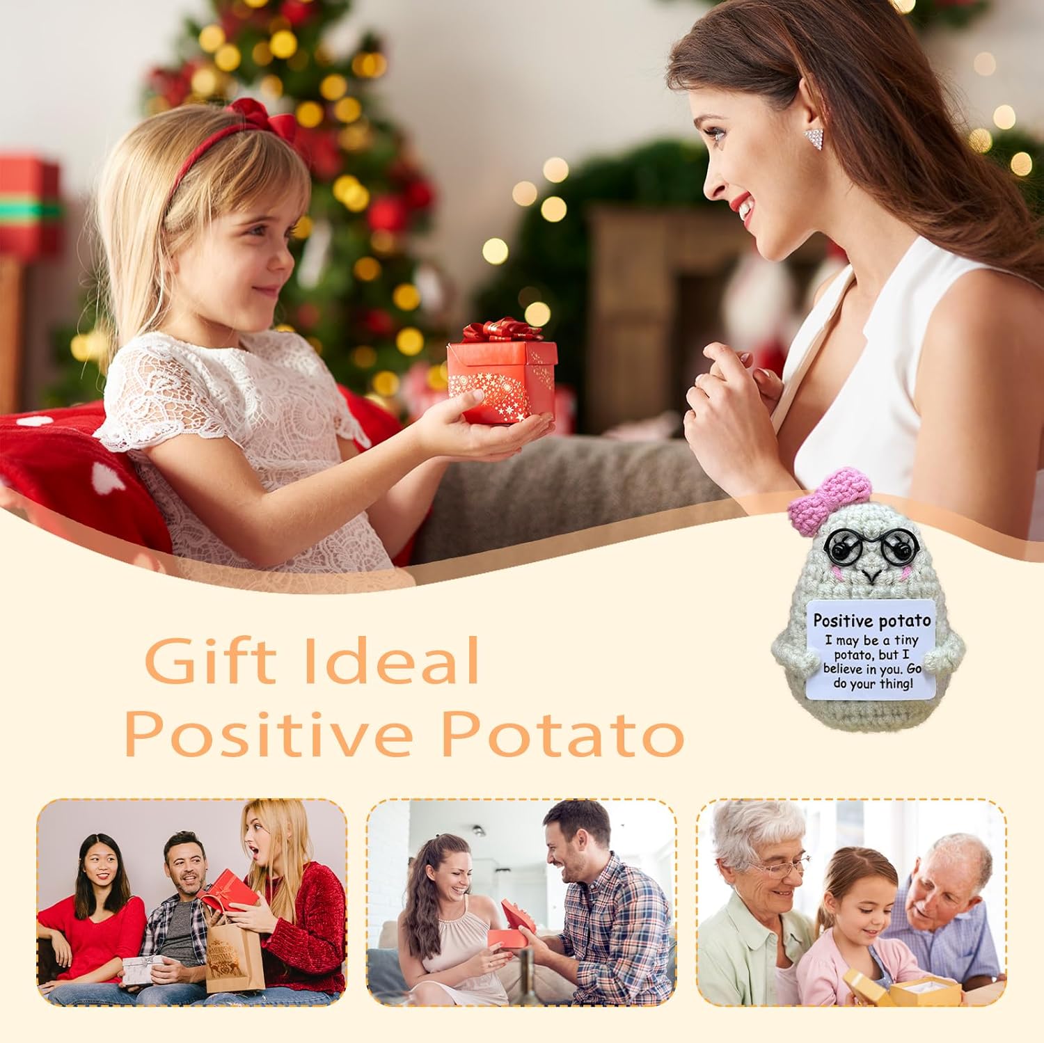 Crochet Emotional Support Potato-Handmade Mental Health Gifts for Friends,Family-Uplifting Gifts for Grandpa,Grandma Mom,Dad,Teens