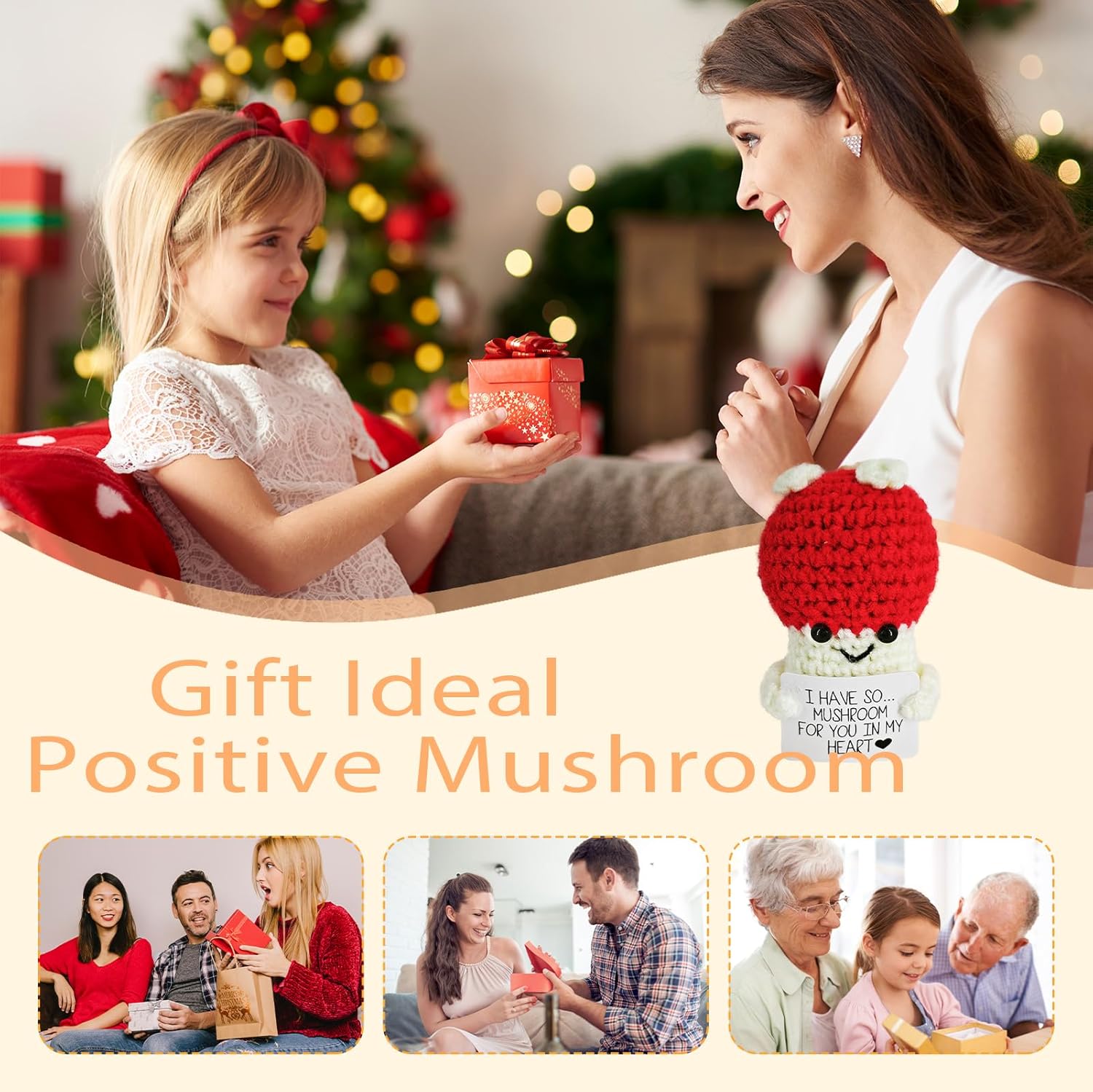 Crochet Emotional Support Mushroom-Handmade Mental Health Gifts for Friends,Family-Uplifting Gifts for Grandpa,Grandma Mom,Dad,Teens