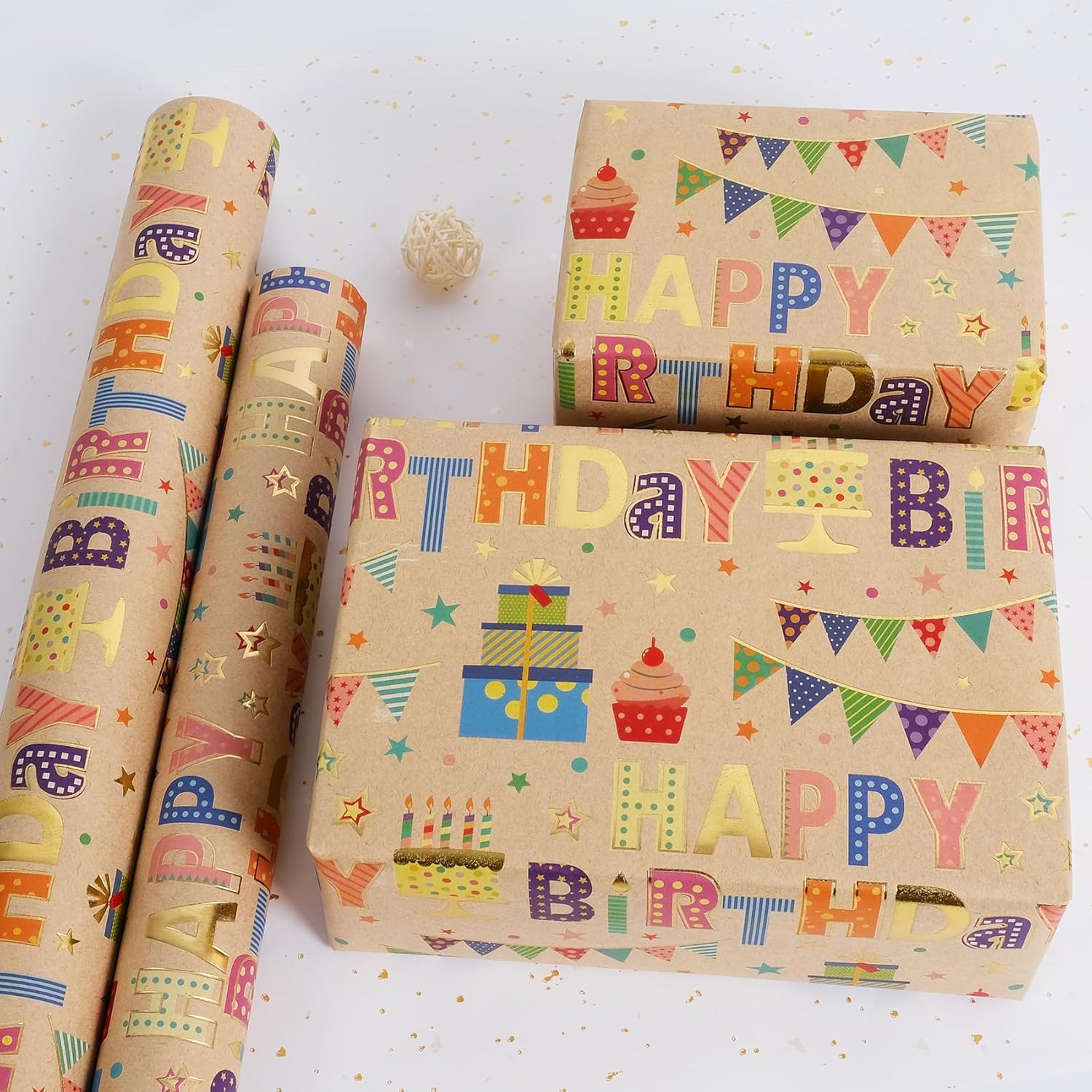 • Happy Birthday Design :Featuring gold foil "Happy Biythday" text makes the gift wrapping be more eye-catching, this wrapping paper creates a fun and joyful atmosphere perfect for any celebration