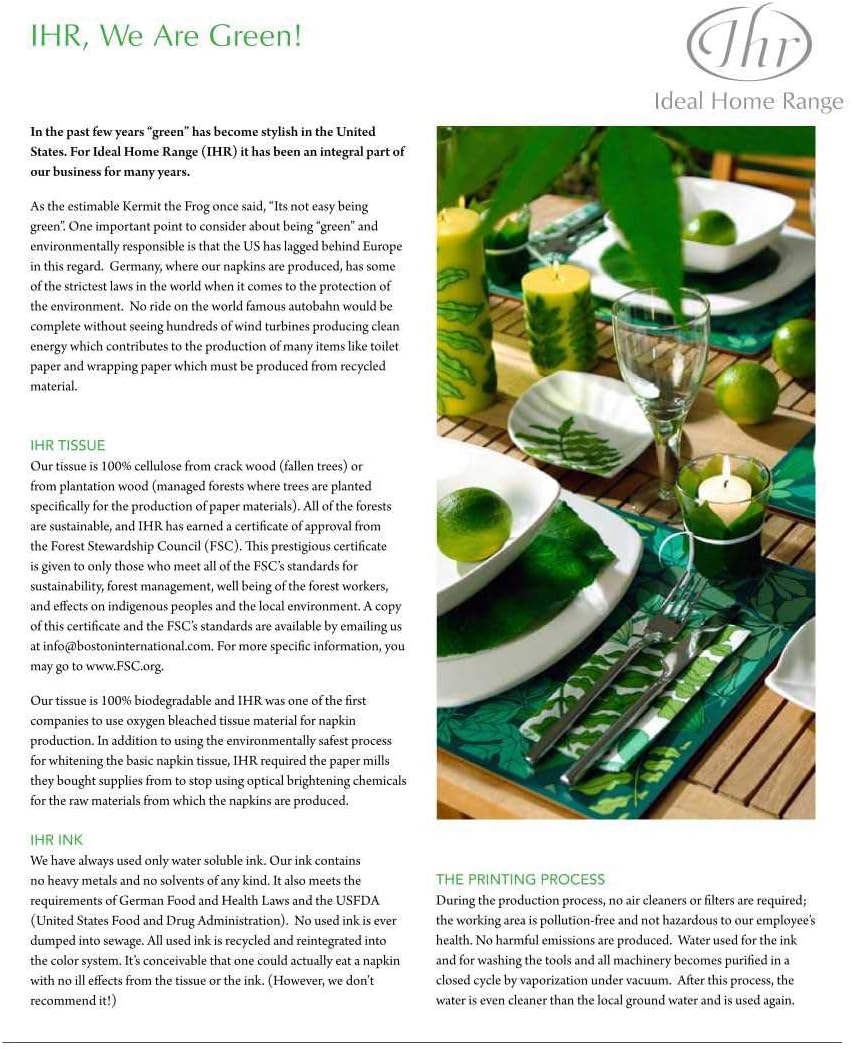 • IHR IDEAL HOME RANGE Since 1977 the premier luxe paper goods maker; printed in Germany with non-toxic, water soluble dyes