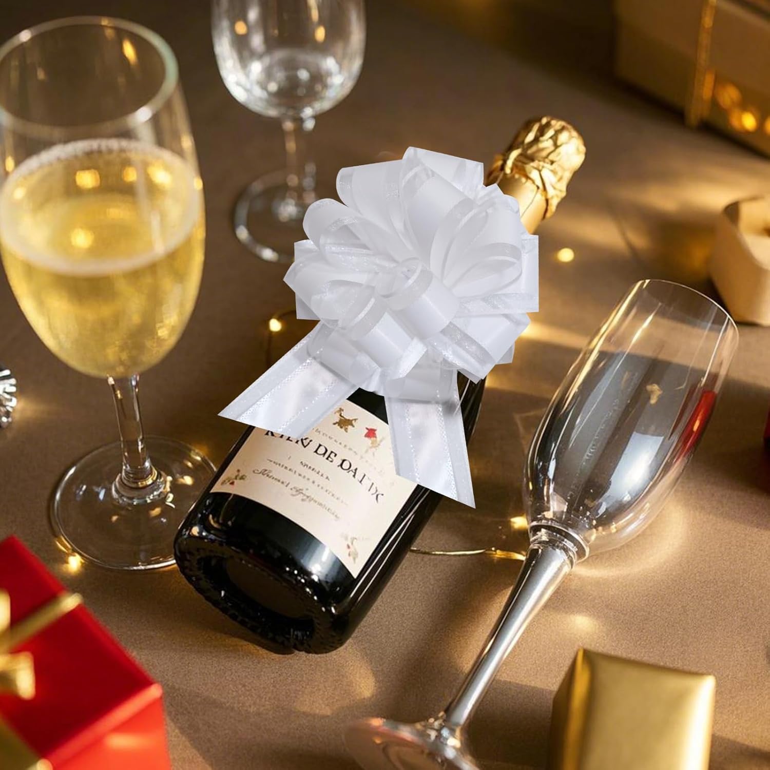 6 Pcs 6 Inch White Pull Bows, Perfect for Gift Wrapping, Weddings, Party Decorations, Crafts Easy-to-Use Ribbon Bows for Gifts and Events