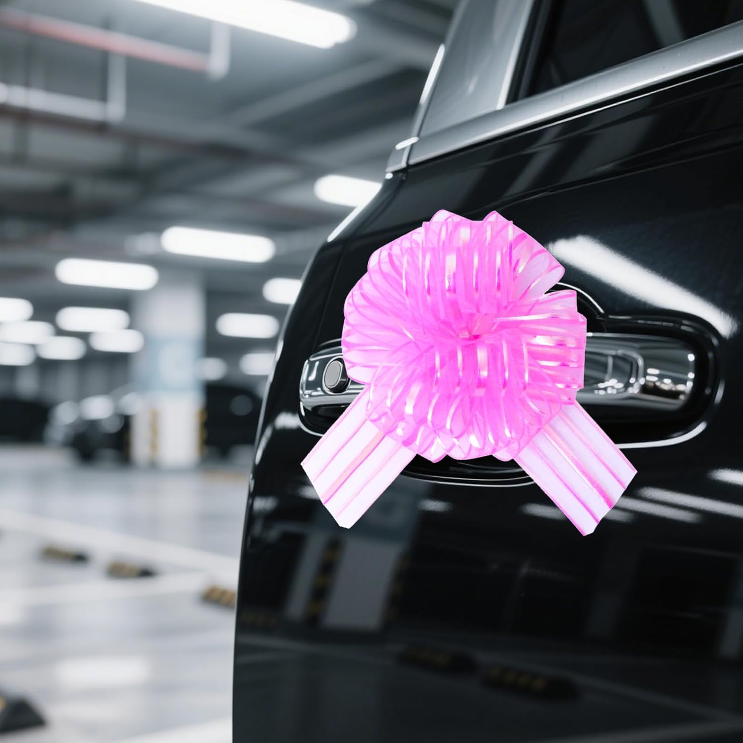 6 Pcs 6 Inch Pink Organza Pull Bow – Perfect for Wedding Decoration, Gift Wrapping Baskets, Car Bows, Birthday Parties, Christmas and Valentine's Day