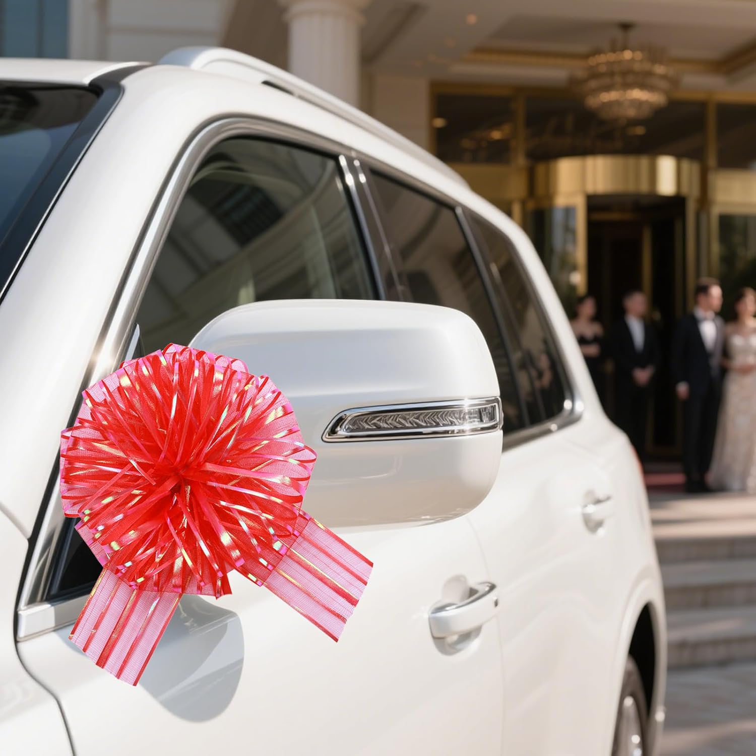 6 Pcs 6 Inch Red Organza Pull Bow – Perfect for Wedding Decoration, Gift Wrapping Baskets, Car Bows, Birthday Parties, Christmas and Valentine's Day