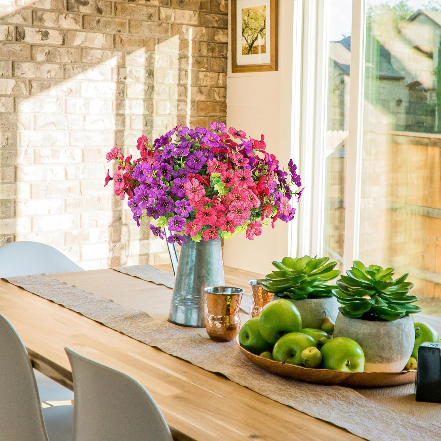 AmyHomie 16 Bundles Artificial Flowers for Outdoor Outside Spring Summer Decoration UV Resistant Faux Flowers No Fade Fake Plastic Plants Garden Porch Window Box Decorating