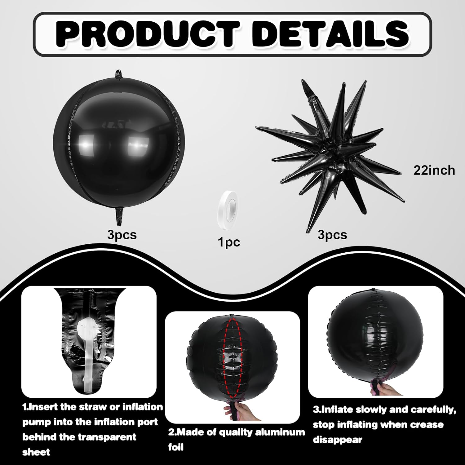• 【Package】The package includes 3pcs 22Inch black 4D ball foil balloons, 3pcs 22Inch black star foil balloons,and ribbon.These huge balloons can help you decorate your party better.