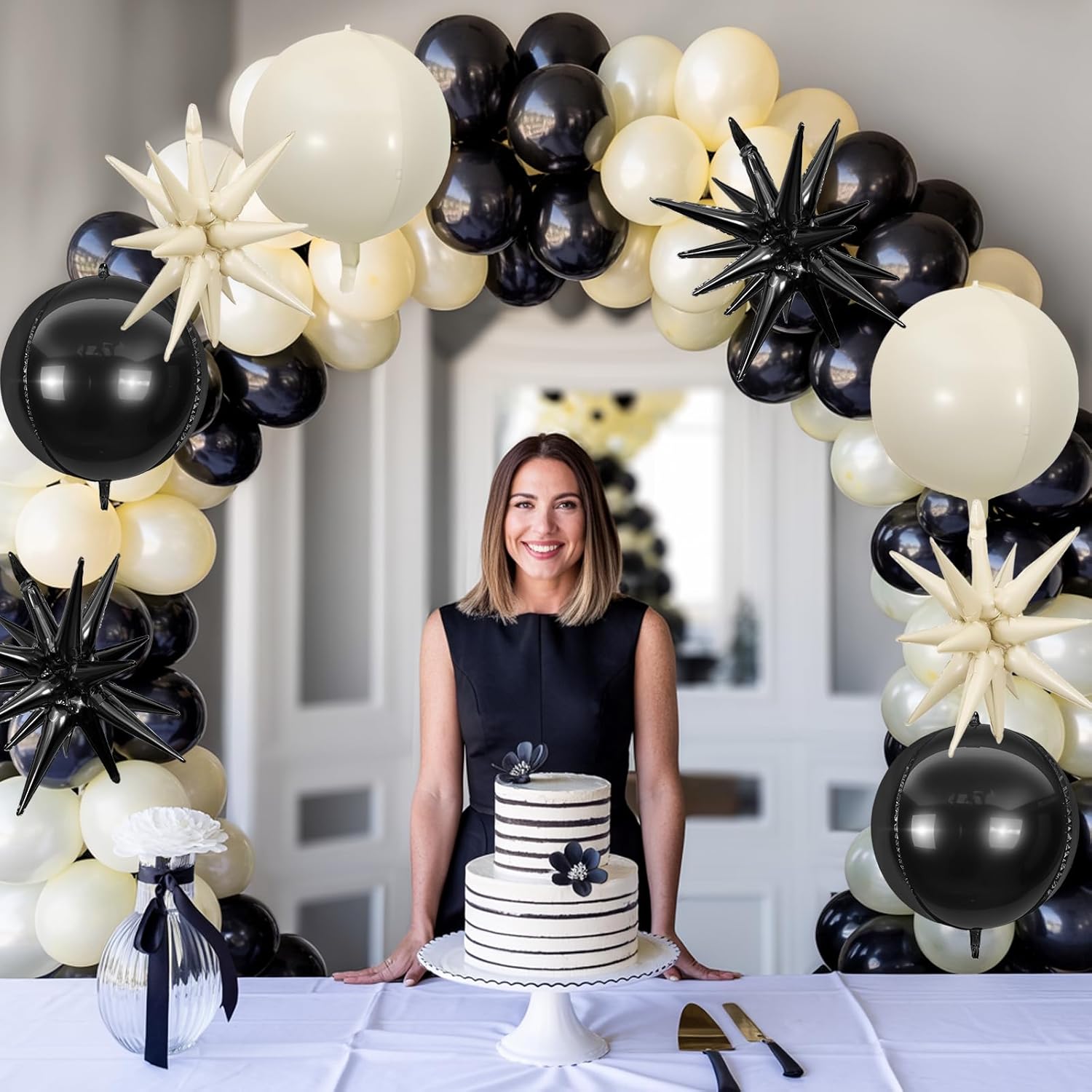 • 【Package】The package includes 3pcs 22Inch 4D ball foil balloons(cream white x 2,black x 1),3pcs 22Inch star foil balloons(black x 2,cream white x 1),and ribbon.These huge balloons can help you decorate your party better.