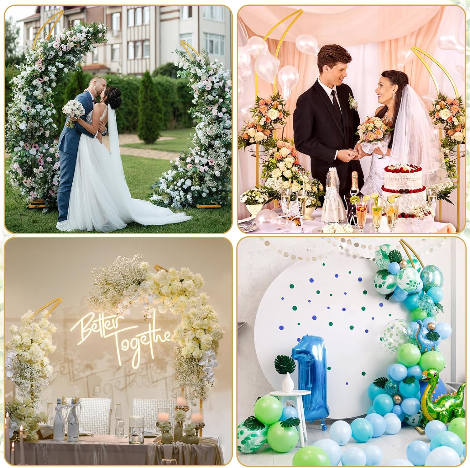 • 【Novel curved design & Secure Base】: This versatile arch features the elegant gate design and adds a vintage and romantic touch while providing a perfect frame. Our metal base adds two diagonal rods to the original T-shaped bracket, forming a triangular stable structure that is not easily blown down or shaken by the wind, providing better support for the background display.Make wedding ceremonies, receptions, anniversaries and special events a breeze for those cherished moments.