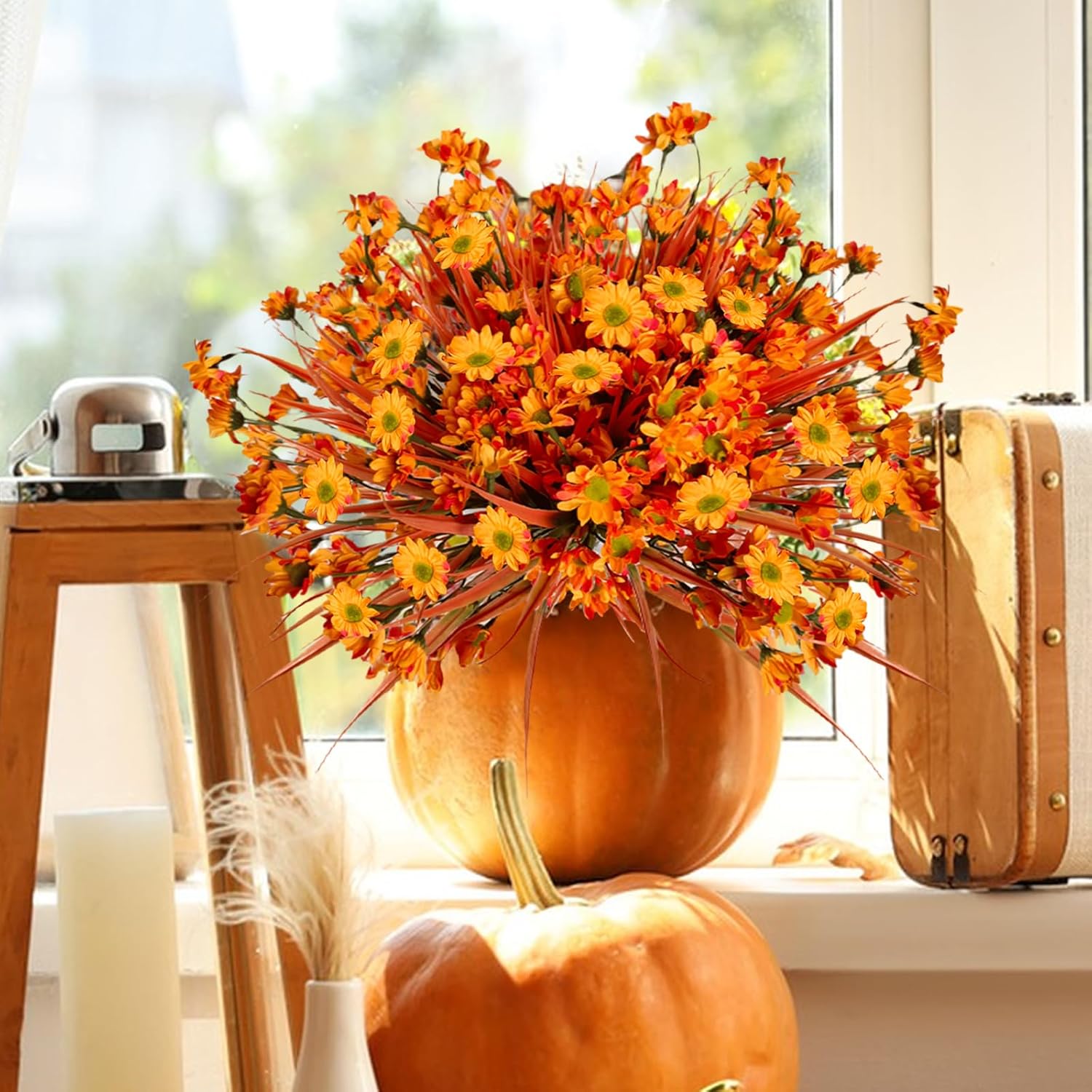 • Easy to Use:Crafted from waterproof, UV-resistant plastic, these flowers thrive without sunlight, watering, or pruning. Enjoy everlasting autumn brilliance.