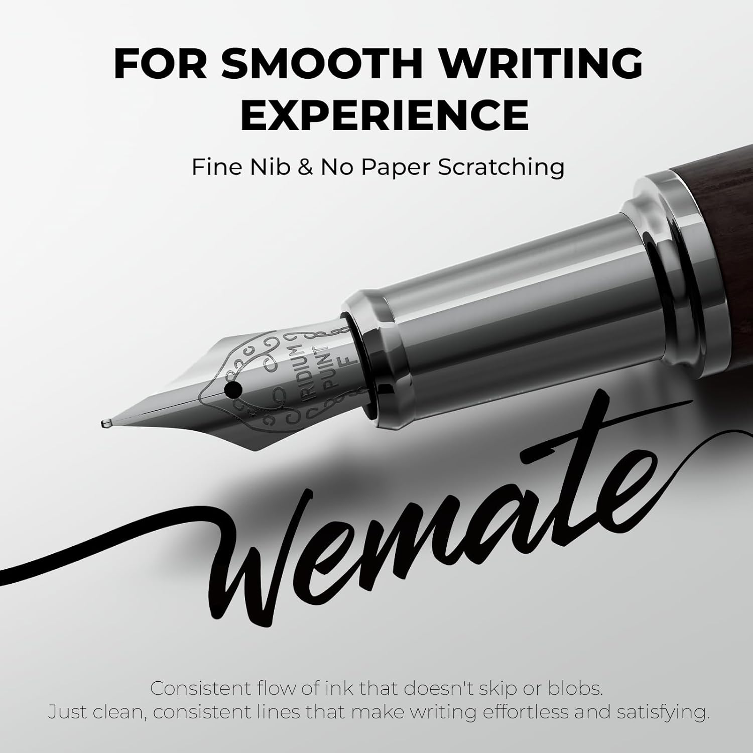 • [All inclusive Refillable Fountain Pen Set] Includes 1PCS Wood Fountain pen,1PCS Ink converter, 10PCS blue ink cartridges, 10PCS black ink cartridges, WEMATE fountain pen set liberates your writing journey. Never pause to hunt for ink — write freely for weeks, keeping your ideas flowing wherever inspiration strikes.