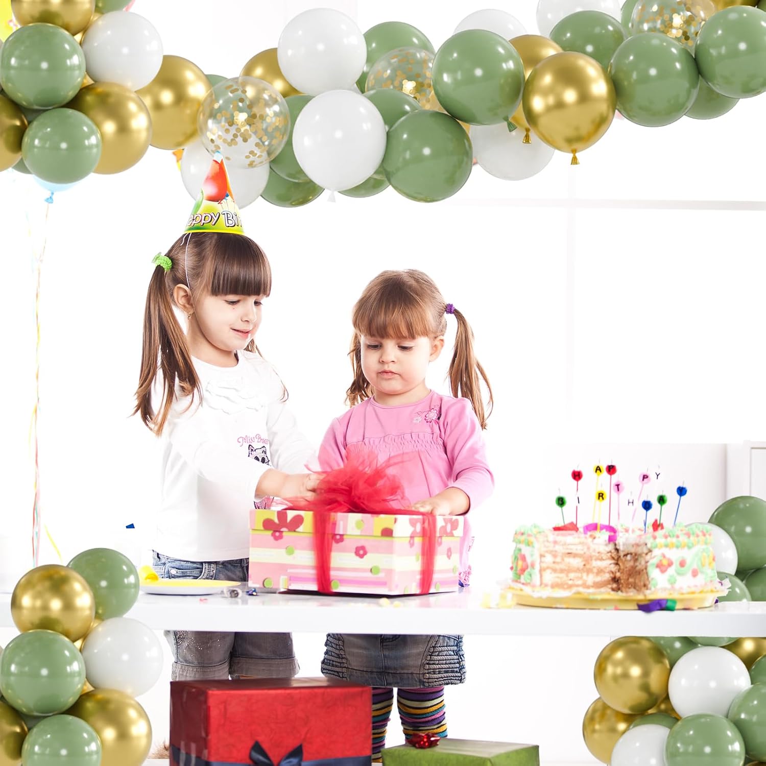 • Sage Green Gold White Balloons Kit : 100 premium 12" latex balloons ( 40 sage green balloons, 40 white balloons, 20 metallic gold balloons, 10 gold confetti balloons ) + 66ft ribbon. Sophisticated palette for designer-worthy installations!