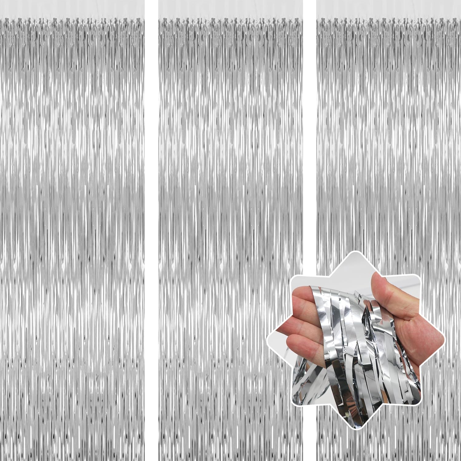 3 Pack Silver Backdrop Curtain Party Decorations Foil Fringe Backdrop Silver Tinsel Streamers Birthday Bachelorette New Year Christmas Wedding Baby Shower Disco Party Decorations