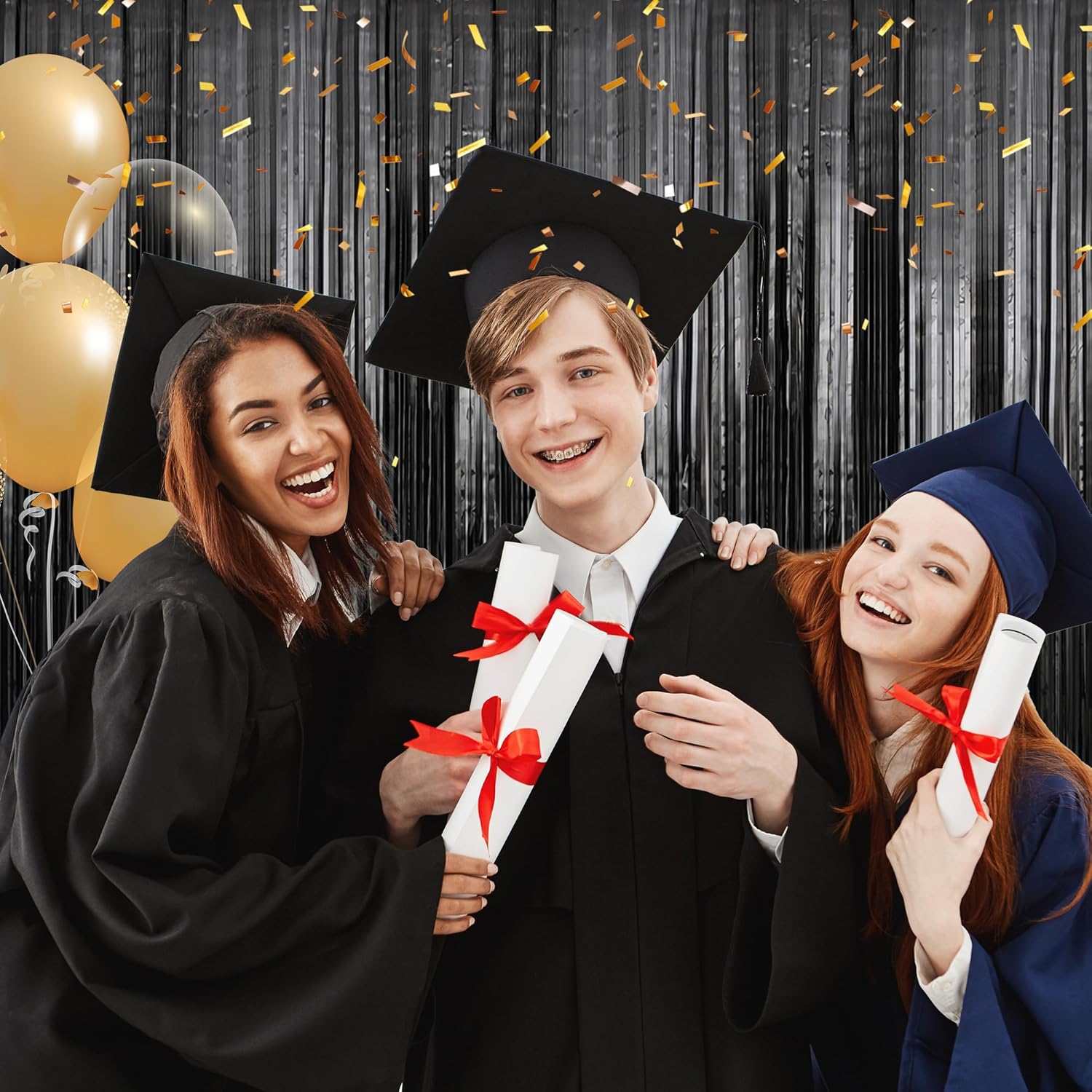 Crosize 7 Pack 3.3 x 9.9 ft Black Foil Fringe Backdrop Curtain, Streamer Backdrop Curtains, Streamers Birthday Party Decoration, Rose Gold Tinsel Curtain for Parties, Galentines Decor, Baby Shower
