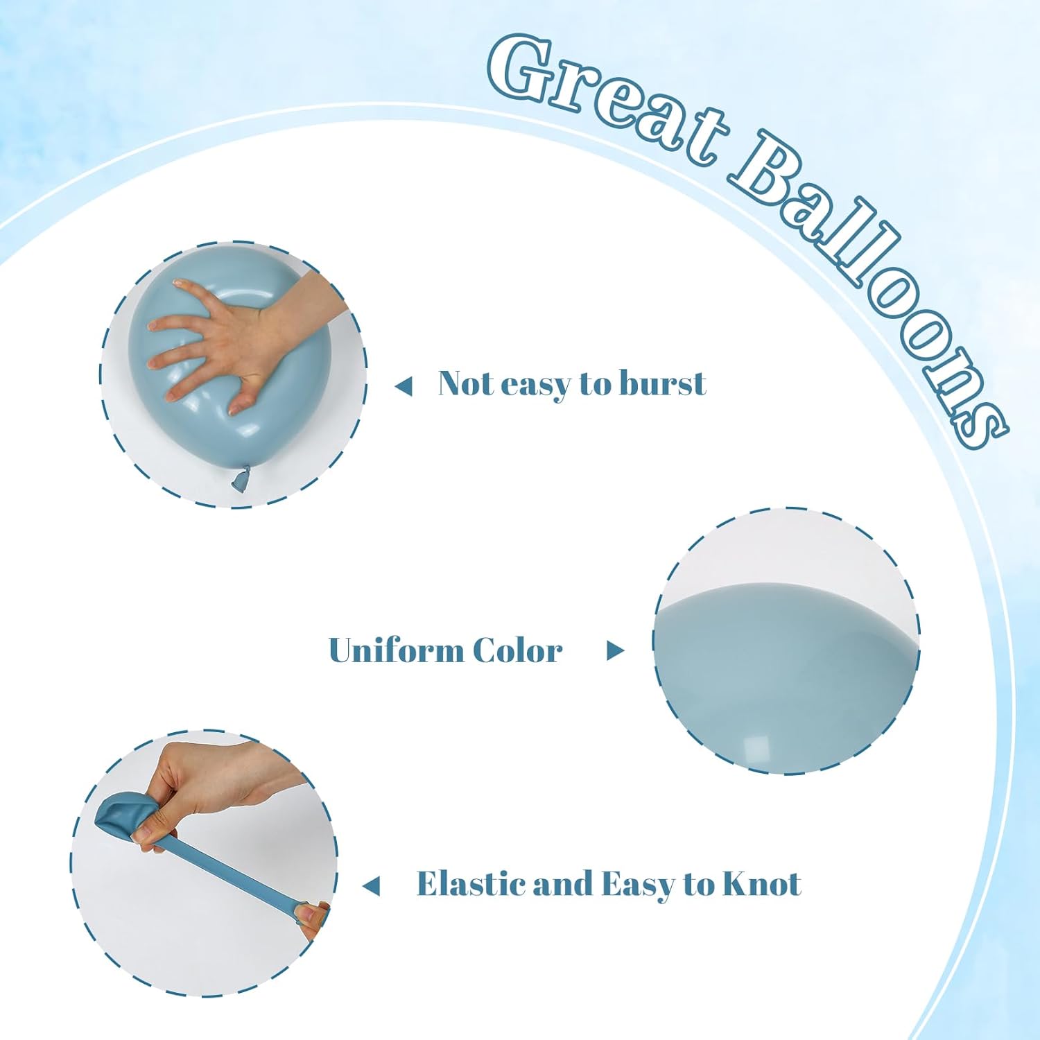 • What You Will Get: The package includes 12inch brown balloonsx20, 12inch dusty blue balloonsx20, 12inch pastel blue balloonsx10, 12inch sand white balloonsx10, glue dotsx20, blue ribbonx1